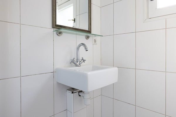 Op de eerste etage vind je drie slaapkamers en een ruim toilet met wastafel. De riolering ligt er al dus een volwaarde badkamer is zeker een optie.