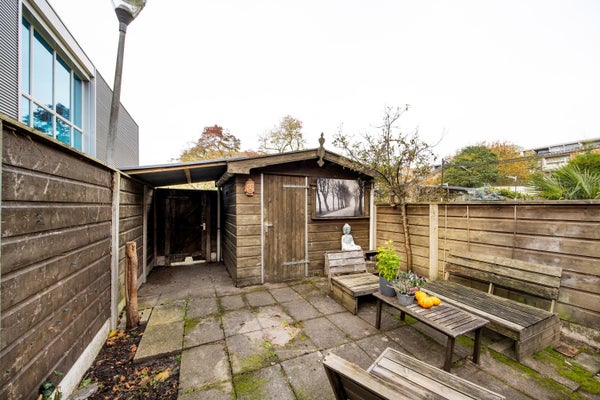 Parterre: Voortuin. Entree, hal, toilet met fonteintje en een trapkast. De heerlijk lichte woonkamer is aan de achterzijde gelegen, heeft een extra zijraam en is voorzien van een laminaatvloer. Wil je de woonkamer vergroten? Aan de achterzijde kan deze nog over de volle breedte worden uitgebouwd. Aangrenzend aan de woonkamer is de bijkeuken gelegen met de aansluiting voor de wasmachine/droger en de opstelplaats voor de c.v. ketel. Aan de voorzijde van de woning is de nette keuken gelegen. Deze is voorzien van enige inbouwapparatuur. De heerlijk zonnige achtertuin is op het westen gelegen, dus ook na je werk kun je hier nog lekker in het zonnetje zitten. De tuin is ook via een achterom te bereiken en hierin is de vrijstaande schuur aanwezig.