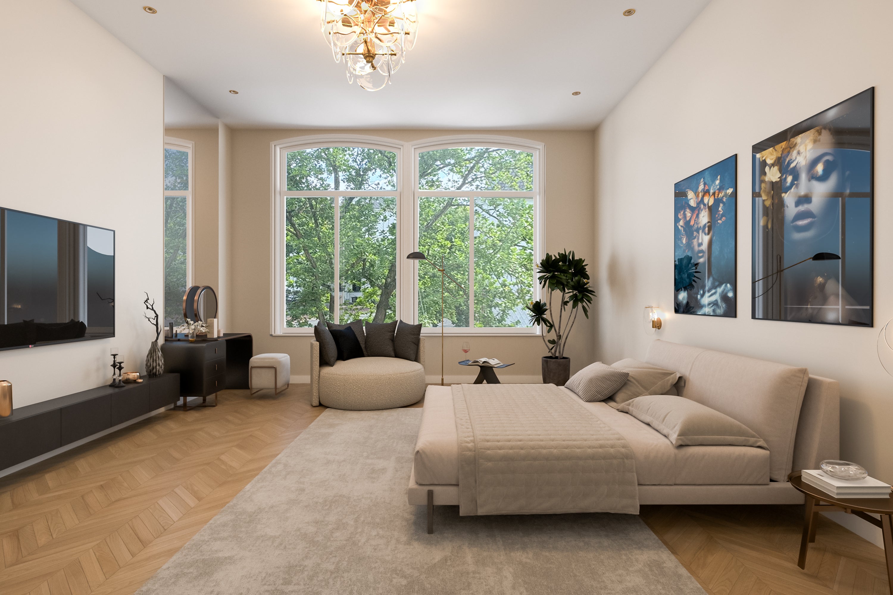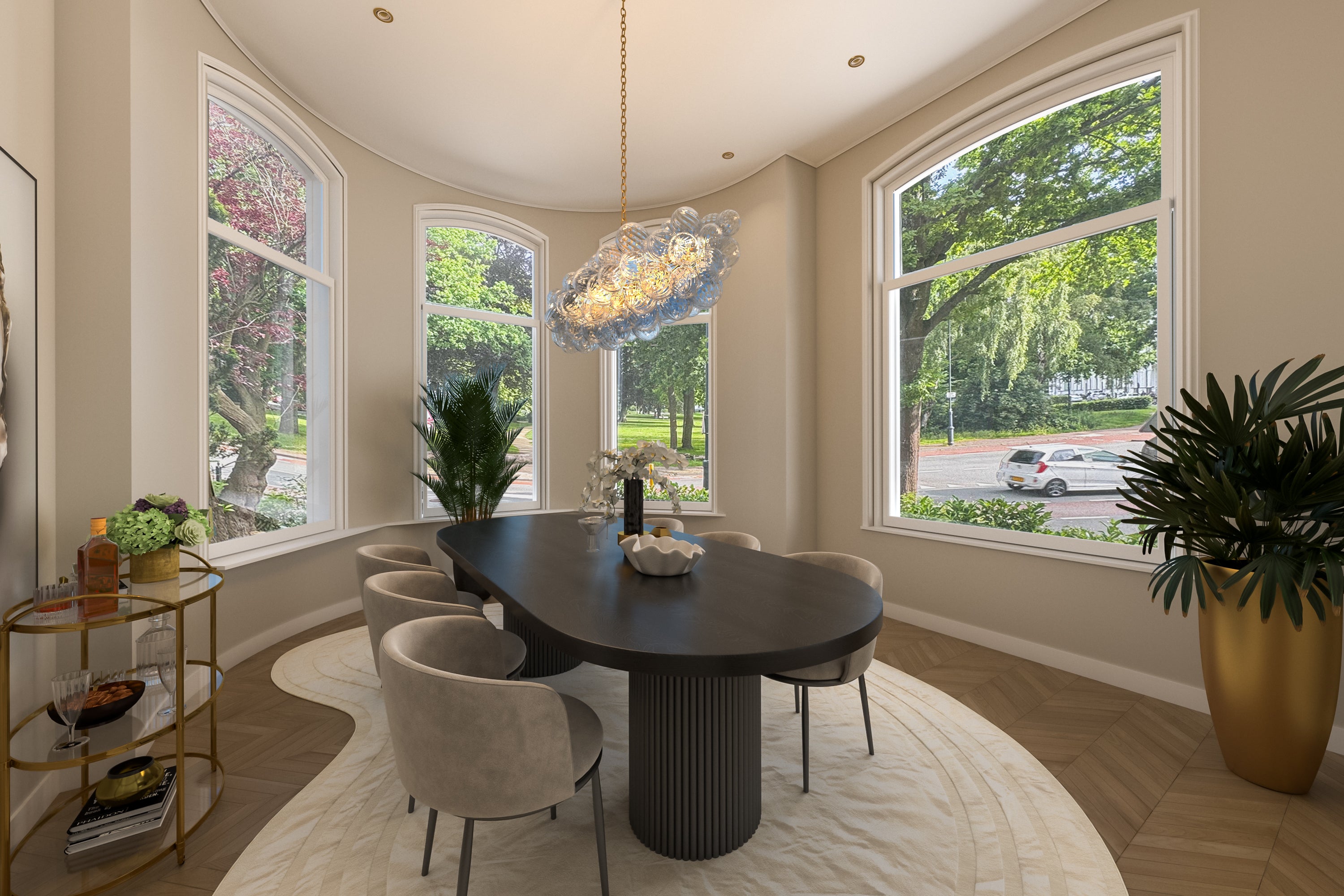Deze monumentale halfvrijstaande stadsvilla heeft een woonoppervlakte van ongeveer 350 m² en een indrukwekkende gevelbreedte van 11 meter. De woning beschikt over een voortuin, een oprit voor meerdere auto's en een zonnige achtertuin op het zuidwesten, met uitzicht op het Kenaupark. In 2023 is de buitenkant volledig gerenoveerd, inclusief het vervangen van ramen door hoogwaardig vacuümglas.