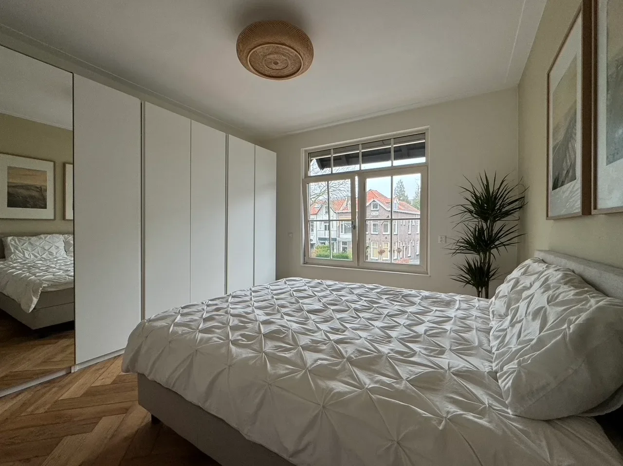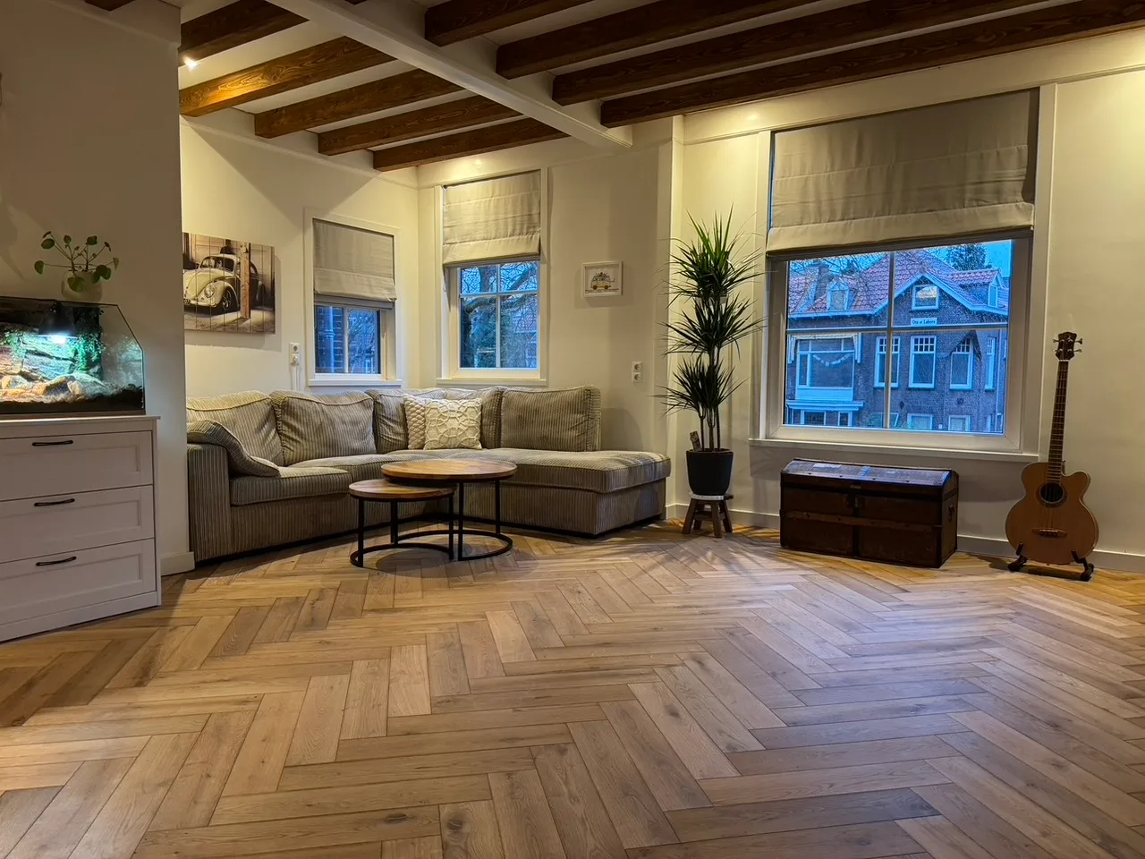 Deze licht en ruim vrij gelegen vierkamer boven appartement, ook wel penthouse genoemd, dateert uit circa 1910 en heeft een karakteristieke voorgevel met een frontbreedte van ongeveer 11.50 m. Het appartement beschikt over een zonnig dakterras van circa 42 m², gelegen op het zuidoosten, wat voor veel privacy zorgt. Binnen zijn er drie ruime slaapkamers, een lichte L-vormige living met houtkachel en een U-vormige open keuken, volledig uitgerust met inbouwapparatuur. De luxe badkamer heeft een inloopdouche en vloerverwarming. Het appartement is in 2022 gerenoveerd met nieuwe kozijnen aan de achterzijde en is voorzien van vloerverwarming en een eikenhouten visgraatvloer. Verder zijn er geen problemen met de isolatie en is er vrij parkeren aan de voorzijde mogelijk.
