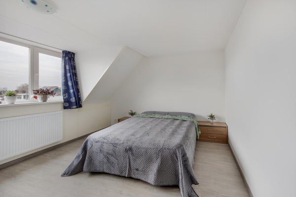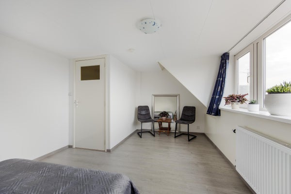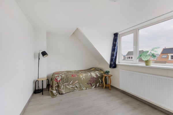 Ruime overloop. Luik met vlizotrap naar vliering. Zowel aan de voor- als achterzijde bevindt zich een dakkapel, waardoor er twee ruime slaapkamers zijn ontstaan. Slaapkamer aan voorzijde (ca. 3,30 m x 2,23 m) met toegang tot wasruimte waar de aansluitingen zijn voor wasmachine en droger. Slaapkamer aan achterzijde (ca. 5,14 m x 2,78 m).