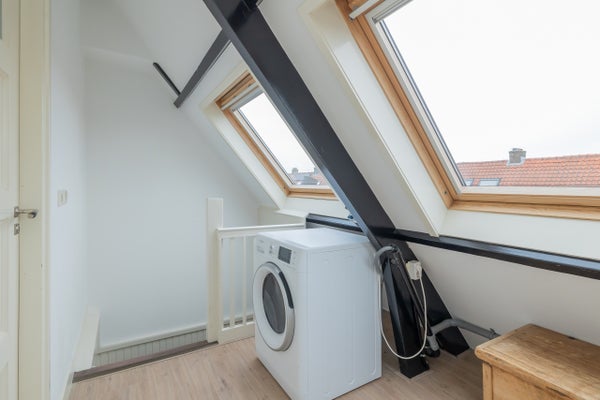 Overloop, wasmachine-/droger-aansluiting en dakramen, 2 slaapkamers aan de achterzijde met een grote dakkapel over de gehele breedte (2008), kast met cv-installatie.