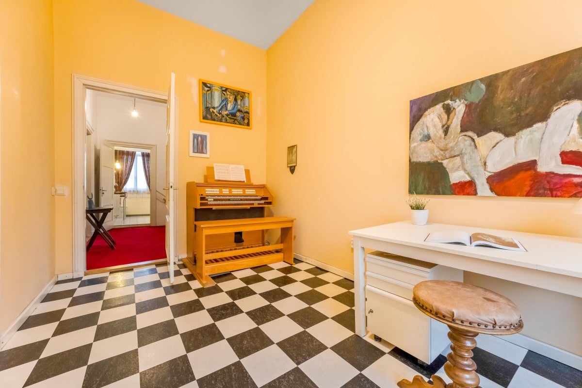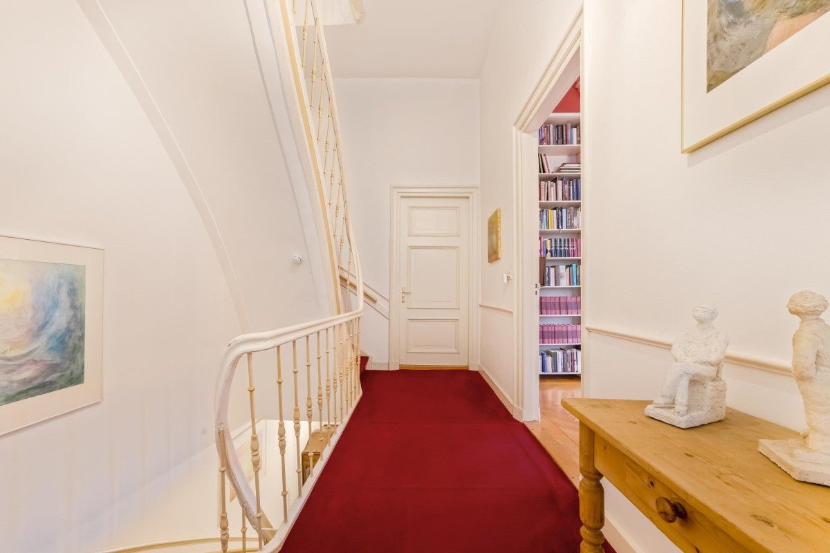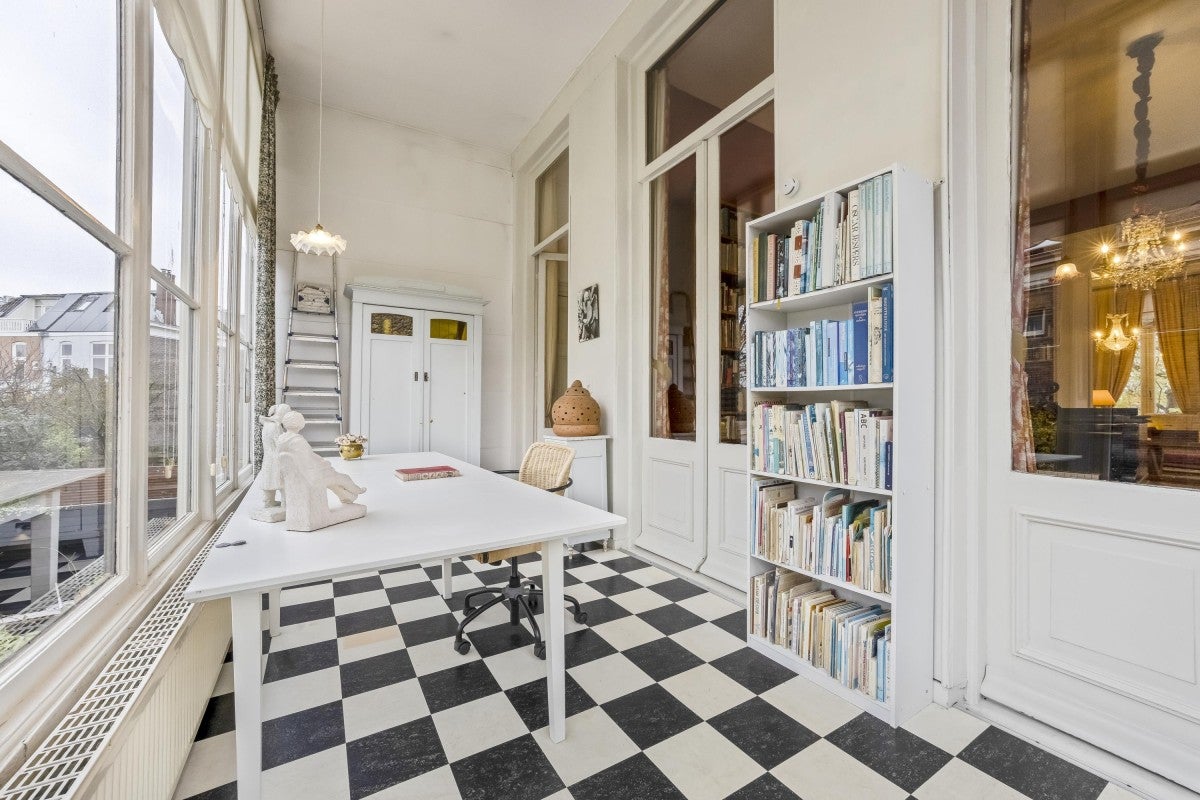 Op het Frans Halsplein in Haarlem staat een statig herenhuis, gebouwd rond 1880, waar wonen en werken samenkomen. Dit monumentale pand, met een royale woonoppervlakte van circa 364 m², ligt op loopafstand van het station en het bruisende stadscentrum. De woning heeft een besloten achtertuin van ca. 86 m², wat zorgt voor een oase van rust. Binnenin zijn er 10 kamers verdeeld over vier woonlagen, waaronder een sfeervolle woonkamer met toegang tot de lichte serre. De eerste verdieping biedt hoge plafonds en uitzicht op het water van de Schotersingel. De tweede verdieping bevat drie flexibele kamers en een zonneterras, terwijl de derde verdieping geschikt is voor logees. Dit herenhuis beschikt ook over een garage en een tweede parkeerplaats, ideaal voor gezinnen en ondernemers.
