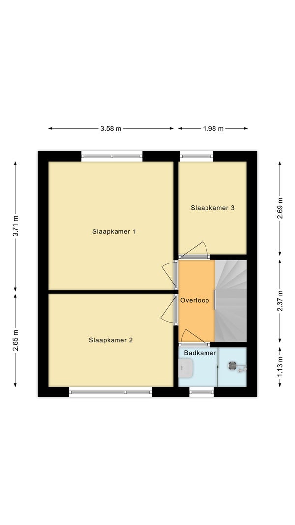 - De tussenwoning heeft een woonoppervlakte van 79 m² en beschikt over 5 kamers, waarvan 4 slaapkamers;