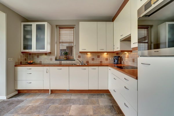 In 2006 is een deel van keuken vergroot met meerdere raampartijen waardoor er veel natuurlijk daglicht binnenkomt. De indeling is praktisch, neutraal en verkeert nog in een goede staat. De inbouwkeuken in hoekopstelling is voorzien van inductie, afzuigkap, oven, vaatwasser, spoelbak en biedt meer dan voldoende opslagruimte. De keuken geeft je toegang tot het achterportaal en middels een loopdeur bereik je ook het buitenleven.
