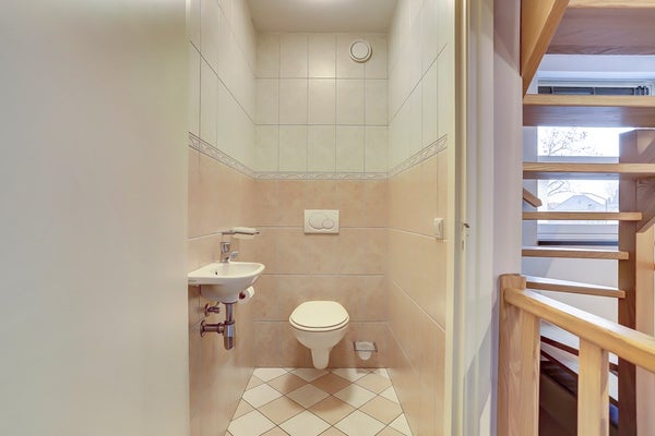 Het fijne van deze verdieping is dat er een separaat toilet aanwezig is. Deze ruimte is voorzien van een hangcloset en fonteintje.