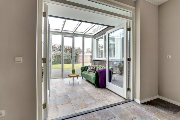 Deze ruimte is bij de woning getrokken en ideaal als speelkamer, werkkamer of extra TV-kamer. De ruimte is voorzien van een tegelvloer met vloerverwarming en extra radiator. Door de harmonica deur kan de gehele achterpui open en voel je direct de verbinding met het buitenleven.