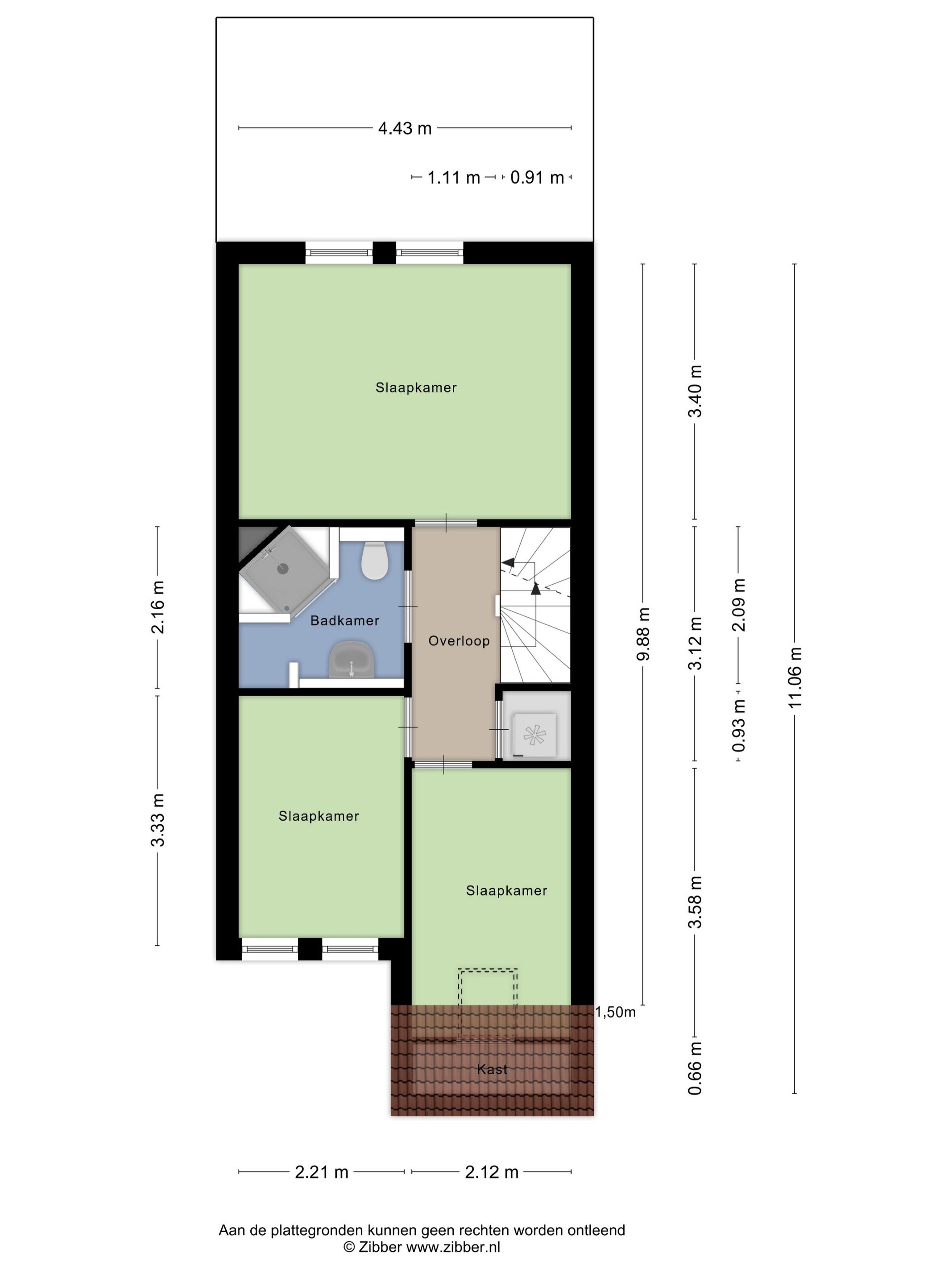 - De tussenwoning heeft een woonoppervlakte van 110 m² en beschikt over 6 kamers, waarvan 4 slaapkamers;