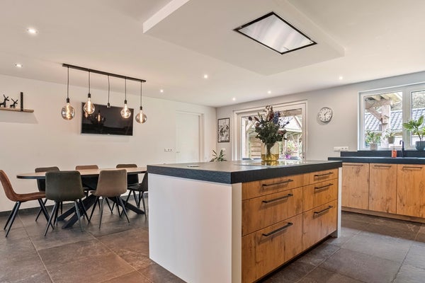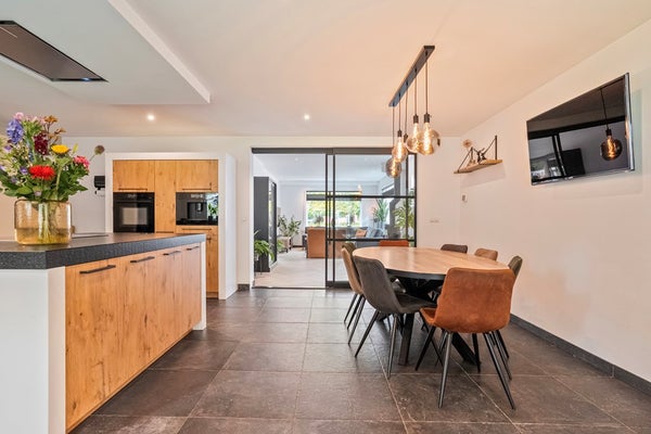 Het hart van de woning? Dat is natuurlijk de woonkeuken. Lekker royaal, sfeervol ingericht en dé plek waar iedereen samenkomt. Bakken met ruimte voor een flinke eettafel, gezellige etentjes met vrienden of spelletjes met de kids. Alles kan hier. Vanuit de keuken loop je zo naar de achtertuin; schuif de deuren open en geniet van binnen én buiten.
