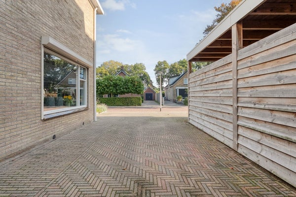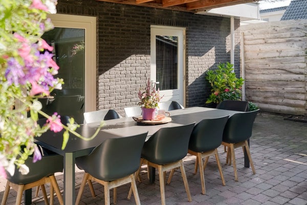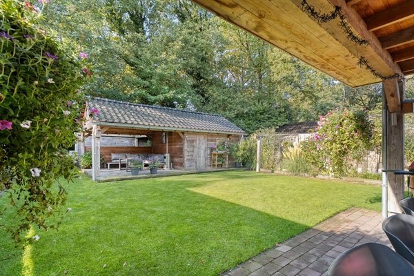 Bij aankomst valt direct de dubbele oprit op – parkeerproblemen zijn hier taboe. Heb je een elektrische auto? Je kunt voor de woning makkelijk een laadpaal plaatsen, mocht je dat willen. Achterom ligt een tuin waar je echt blij van wordt: speels aangelegd met verschillende hoekjes, veel privacy, een royale overkapping (lekker lang buiten zitten!) én handige schuur/barruimte voor feestjes of klussen. Extra’s als een pergola maken het helemaal af.