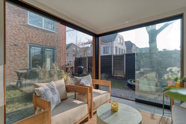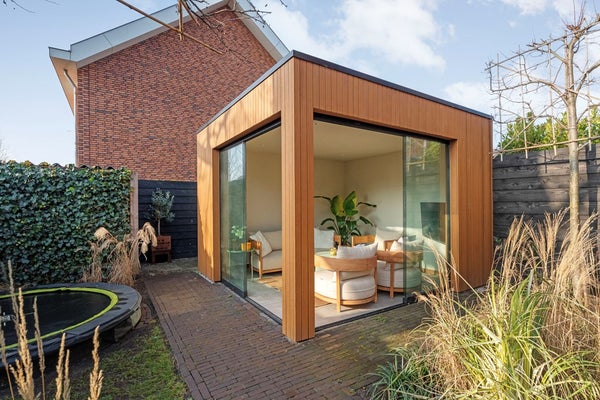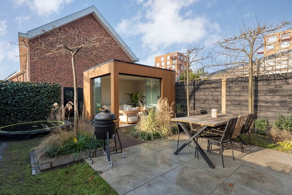 • Strak aangelegde achtertuin met tuinkamer en extra schuurtje.