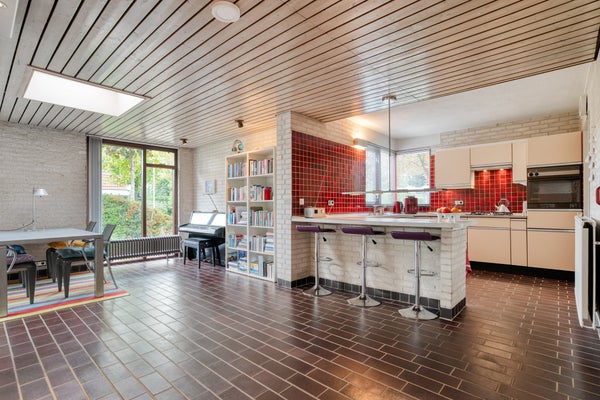 Deze onder architectuur gebouwde vrijstaande woning aan de Baalder-Esch biedt een unieke woonbeleving door zijn kubistische ontwerp en speelse gevelcombinatie. Gebouwd in de jaren '70 op een royaal perceel van 748 m², vraagt de woning enige modernisering maar behoudt veel originele elementen. Met een oppervlakte van 154 m² omvat de begane grond diverse mogelijkheden, waaronder een sfeervolle woonkamer met uitzicht op de tuin, een half-open keuken en een garage. Boven zijn er vier slaapkamers en een ruime badkamer. De kelder biedt extra ruimte voor recreatie. Rondom de woning ligt een ruime groene tuin, ideaal voor een combinatie van binnen- en buitenleven. Dit huis is perfect voor gezinnen die willen doorgroeien.