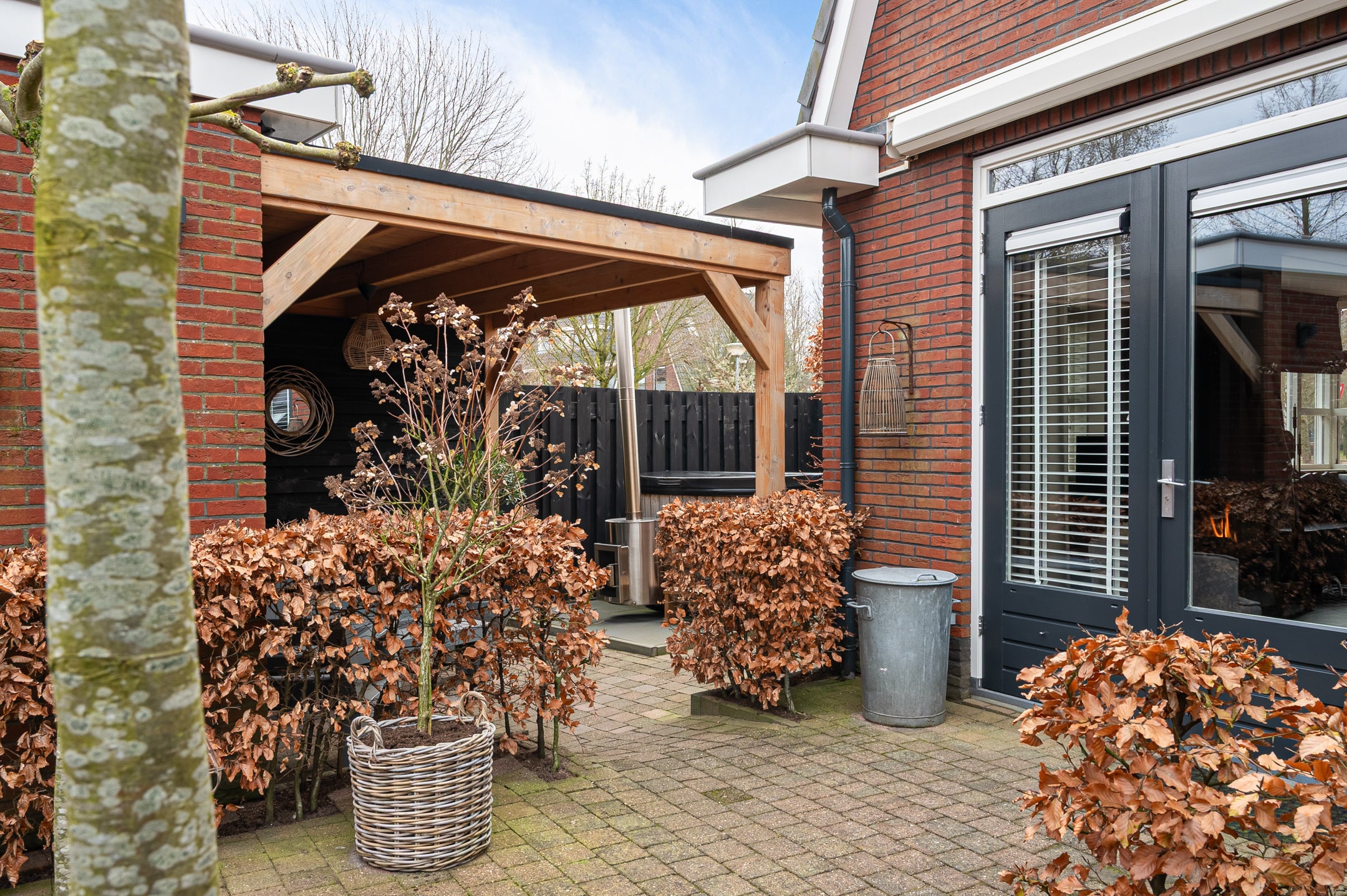 Deze energiezuinige hoekwoning uit 2005 met energielabel A biedt comfortabele en duurzame woonruimte. De woning heeft vloerverwarming op alle verdiepingen en een zonneboiler. Bij binnenkomst valt de lichtinval op, door de erker en de openslaande tuindeuren. De woonkamer met gashaard is verbonden met een luxe open keuken (2018). Op de eerste verdieping bevinden zich twee slaapkamers en een badkamer (2018) met dakkapel, douchen en vloerverwarming. De ruime zolder heeft een slaapkamer en mogelijkheden voor werkruimte. Buiten zijn er terrassen, een veranda en een houtgestookte hottub in de diepe tuin met veel privacy. Parkeren is ruim mogelijk op eigen terrein met een vrijstaande garage.