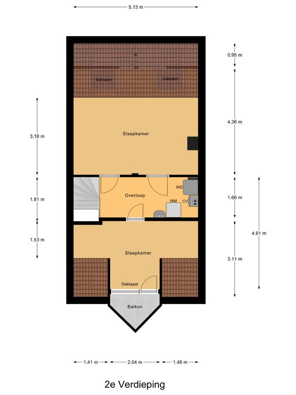 - De tussenwoning heeft een woonoppervlakte van 145 m² en beschikt over 6 kamers, waarvan 5 slaapkamers;