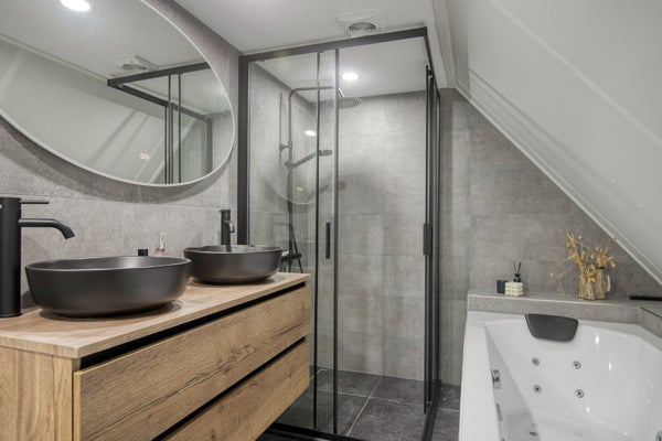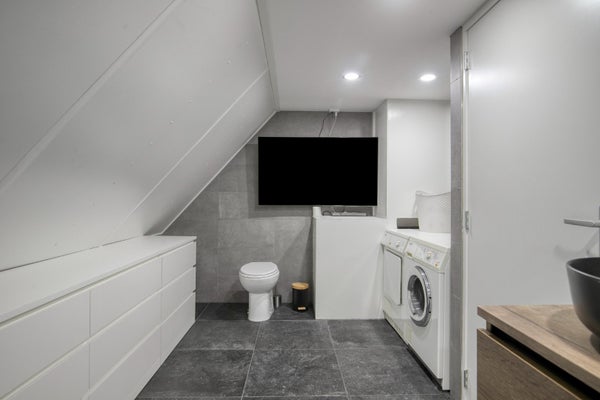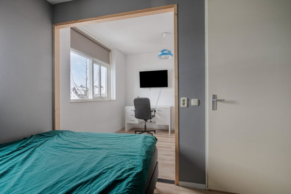 De zolder biedt plaats aan een derde slaapkamer, tweede badkamer en extra bergruimte. Perfect voor een (tiener)kamer, logeerplek of werkruimte. Vanaf de tweede verdieping is ook een vlizotrap aanwezig naar een zolder met extra bergruimte.