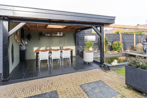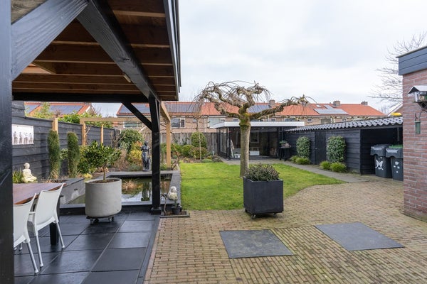De achtertuin heeft een afmeting van maar liefst 17 x 10 meter en is gelegen op het noordoosten. In de zomer is de tuin een groene oase van prachtige planten en bloemen. Er is een grote overkapping waar je in de ochtendzon kan genieten van een kopje koffie. Achterin de tuin is nog een extra tuinkamer te vinden waar je juist weer van de avondzon kan genieten. Voor de tuinliefhebbers is dit de perfecte plek om te ontspannen en trots te zijn op wat groeit en bloeit.