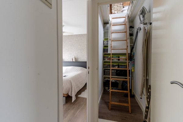 via een vlizotrap is de bergzolder te bereiken. Hier is een dakvenster voor wat daglicht.