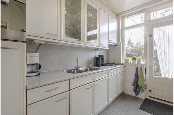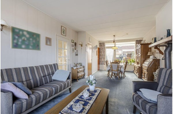 In Hardinxveld-Giessendam ligt deze praktische eengezinswoning uit 1965, dichtbij het centrum. Via de entree kom je in de hal met trapopgang, toilet en trapkast, die toegang biedt tot de woonkamer en keuken. De woonkamer is een fijne leefruimte met een houtkachel, perfect voor gezelligheid in de winter. Beide ruimtes hebben directe toegang tot de verzorgde achtertuin, die is voorzien van sierbestrating en plantenborders. De keuken beschikt over een koelkast, combi-magnetron, afzuigkap en gaskookplaat. Op de eerste verdieping vind je drie slaapkamers, een badkamer en een aparte wasruimte, met toegang tot de bergzolder voor extra opslag. Een ideale woning met een prettige indeling en een groene buitenruimte.