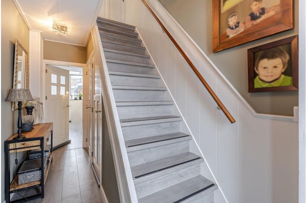 In deze tussenwoning ervaar je vanaf het eerste moment het wooncomfort en de aandacht voor detail. Jarenlang met zorg bewoond, straalt het huis naar voren. Met kunststof kozijnen en rolluiken aan de meeste zijden, plus een uitbouw van 3 meter aan de achterzijde, is er voldoende lichtinval dankzij het grote raam en de schuifpui naar de tuin. De houtkachel in de schouw voegt sfeer toe. De praktische keuken heeft een duo-opstelling en loopt door naar de zonnige tuin op het zuidoosten, waar je meerdere terrassen en een stenen berging vindt. De bovenverdiepingen bevatten een moderne badkamer en vier slaapkamers, waaronder een fijne werkkamer op de tweede verdieping. Dit huis, gebouwd in 1964, heeft een woonoppervlakte van 105 m² op een perceel van 160 m².