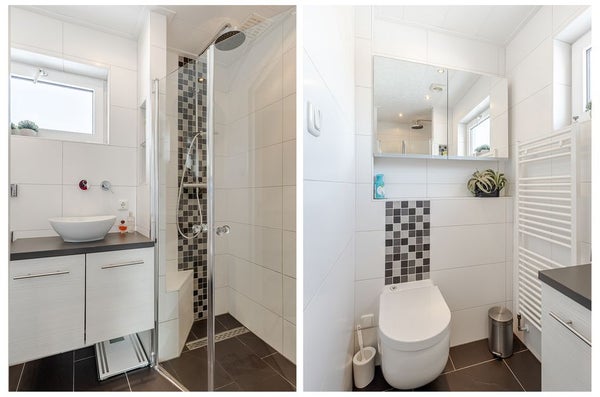 - De tussenwoning heeft een woonoppervlakte van 105 m² en beschikt over 5 kamers, waarvan 4 slaapkamers;