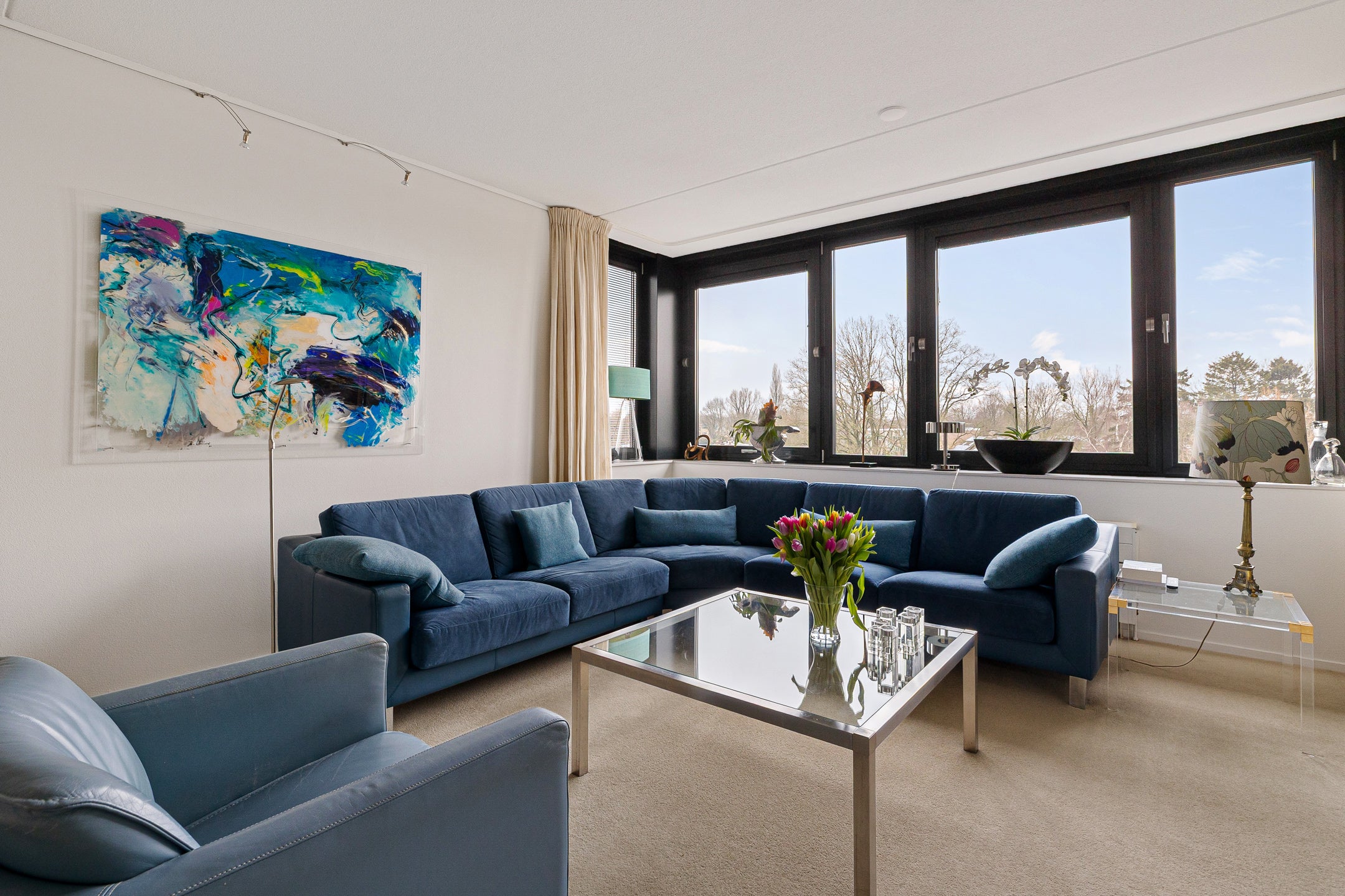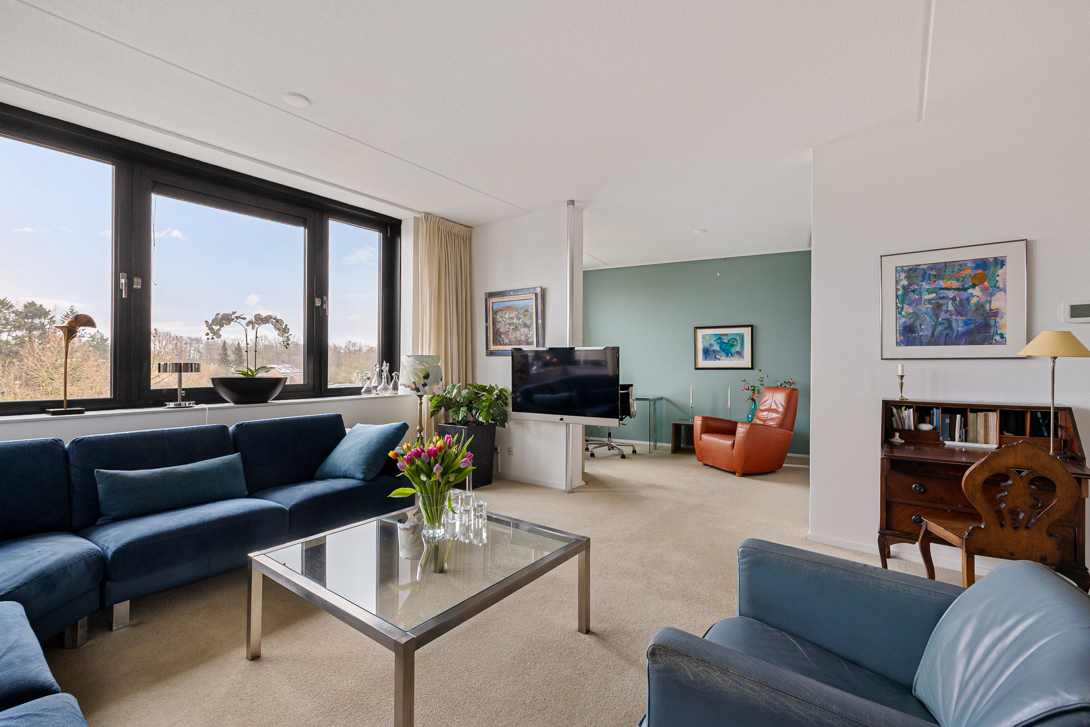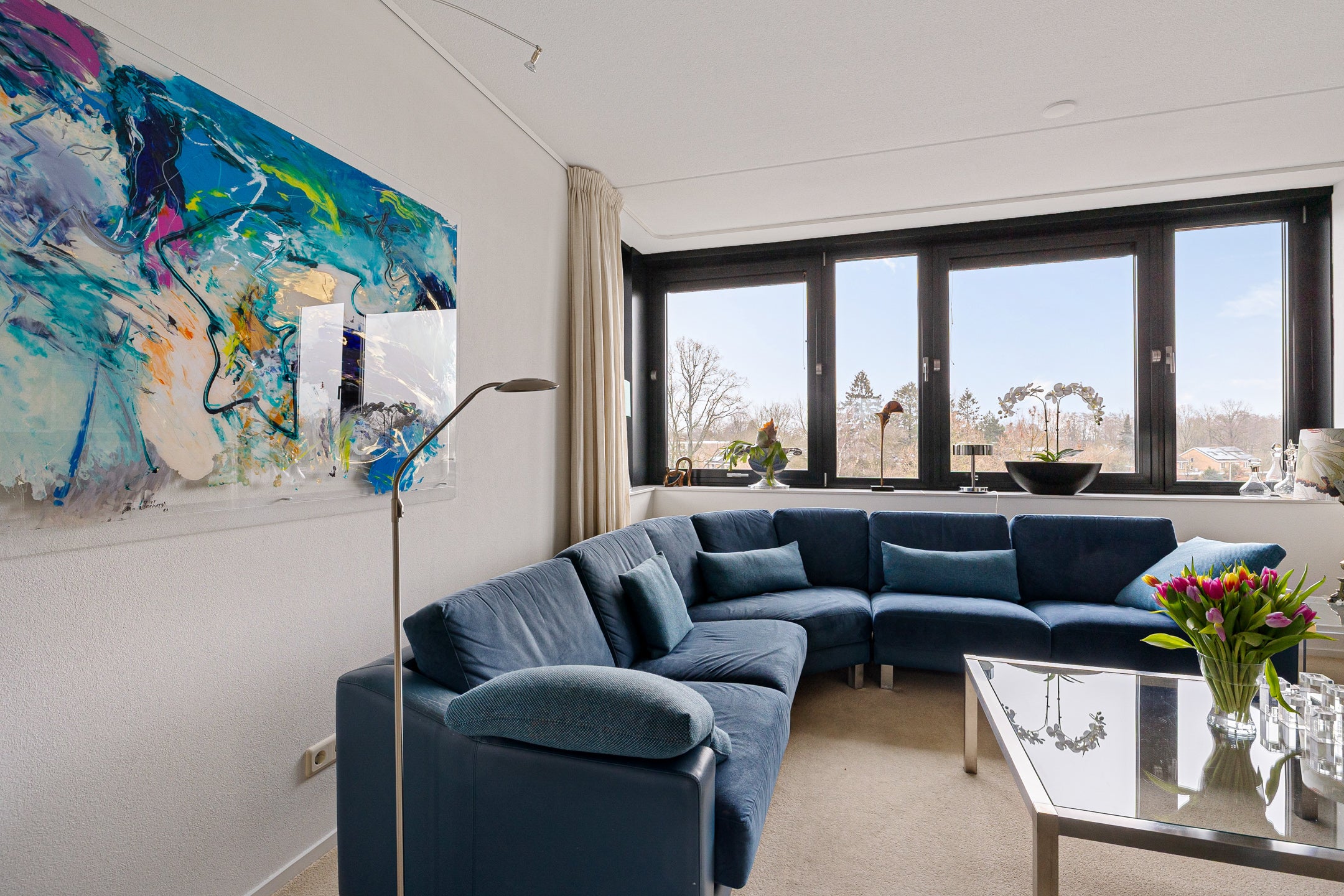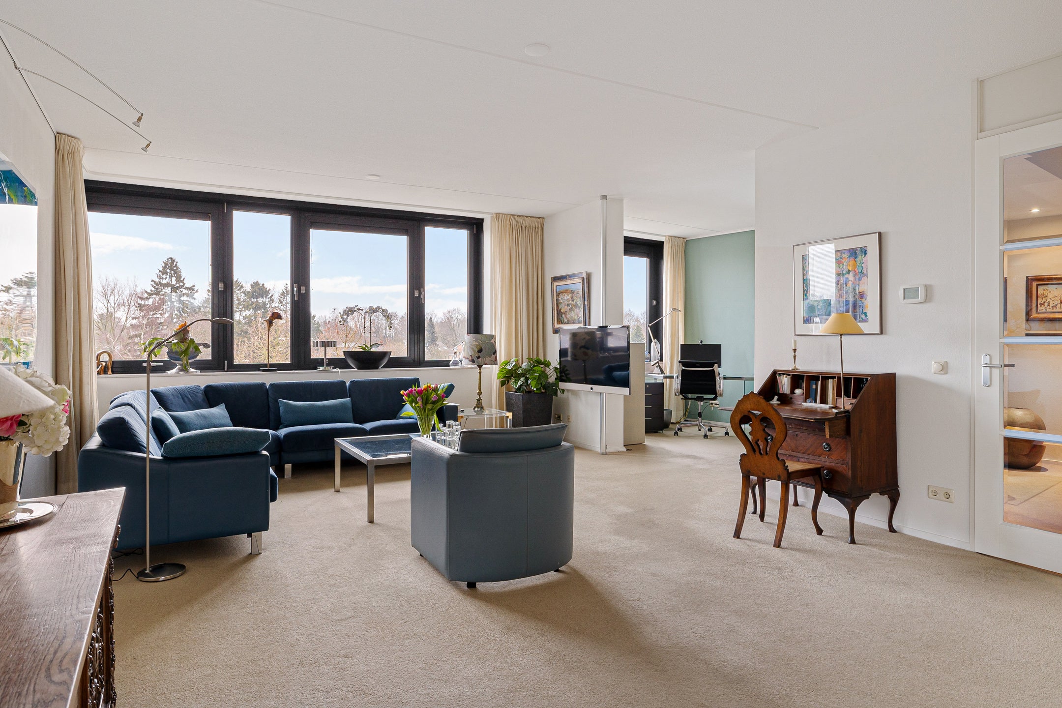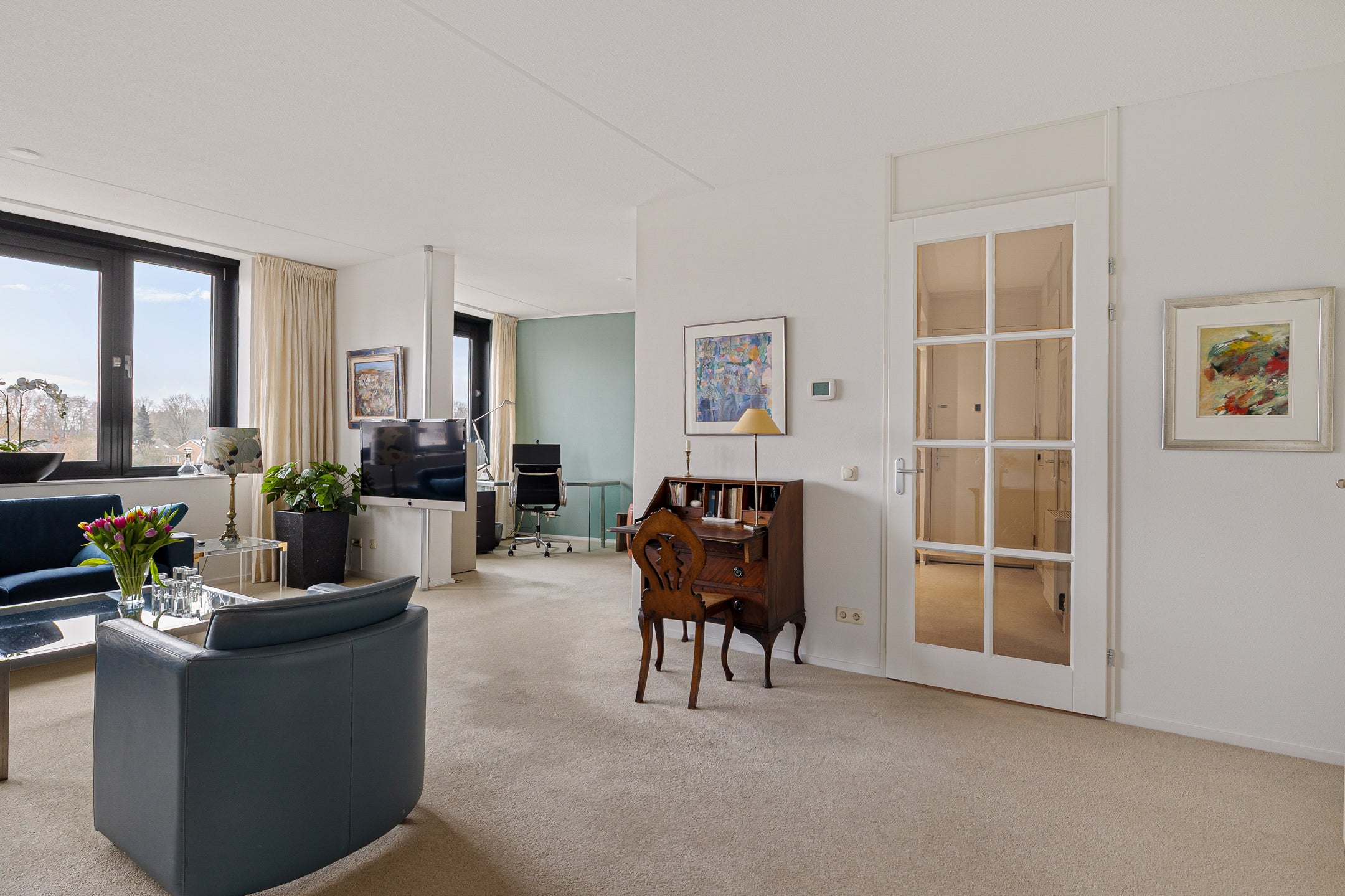 Dit mooie penthouse in appartementencomplex ‘De Muntinge’ biedt royale afmetingen en een prachtig uitzicht over het groene landschap. Gelegen in een rustige woonwijk, dicht bij het levendige winkelcentrum van Haren, combineert het comfort van een moderne woning met praktische indelingen. Met twee aparte ingangen en slechts twee appartementen per etage, biedt het penthouse op de derde verdieping zicht aan drie zijden. Binnen bevindt zich een ruime keuken met kookeiland, een open werkkamer, twee slaapkamers en een luxe badkamer met inloopdouche en ligbad. Een eigen garage met elektrische roldeur en toegang tot een terras van 12 m² maken het compleet. De omgeving is veelzijdig, met aanloop naar de Hortus Botanicus en goede verbindingen naar het centrum van Haren en Groningen.