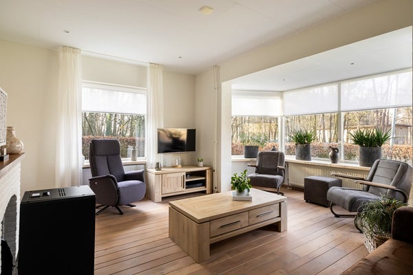 Op een groene locatie net buiten Harskamp staat deze vrijstaande woning met royale schuur en overkappingen, gelegen aan de Radioweg 30. De woning, gebouwd in 1960, is door de jaren heen goed onderhouden en beschikt over energielabel C. Met een woonoppervlak van circa 169 m² en maar liefst vier slaapkamers – waarvan één op de begane grond – is dit een fijne gezinswoning én zeer geschikt voor levensloopbestendig wonen. Het royale perceel van maar liefst 1.100 m² rondom de woning, met volop groen, biedt veel privacy en zorgt ervoor dat je hier heerlijk beschut van de ruimte kunt genieten. Tegelijkertijd zijn de voorzieningen van Harskamp eenvoudig bereikbaar per fiets of auto. Ook plaatsen als Ede, Apeldoorn en Barneveld liggen op korte afstand. Als extra bonus woon je hier aan de rand van Nationaal Park De Hoge Veluwe, waardoor de prachtige natuur altijd binnen handbereik is. Nieuwsgierig geworden? Je bent van harte welkom voor een bezichtiging!
