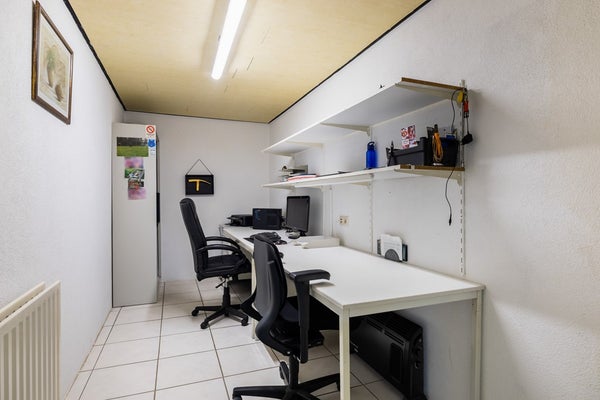 Via de entree kom je in de hal, die toegang biedt tot de woonkamer, eetkamer, toiletruimte, kelderkast en de trap naar de 1e verdieping. De woonkamer, gelegen aan de voorzijde van de woning, beschikt over een houten vloer en vormt dankzij de pelletkachel en de ruime erker een warme en sfeervolle leefruimte. De eetkamer is eveneens voorzien van een pelletkachel en staat in open verbinding met de keuken. De keuken is uitgevoerd in een praktische hoekopstelling en uitgerust met een inductiekookplaat, afzuigkap, oven en vaatwasser. Daarnaast bevindt zich in de keuken een bergkast met daarin de cv-installatie (Nefit, 2008). Via zowel de keuken als de tuin bereik je de bijkeuken. Deze multifunctionele ruimte beschikt over airconditioning, een keukenblok en aansluitingen voor de wasmachine en droger. Vanuit hier heb je toegang tot de garage, een slaapkamer en een kantoorruimte. Dankzij de slaapkamer op de begane grond is de woning bovendien levensloopbestendig