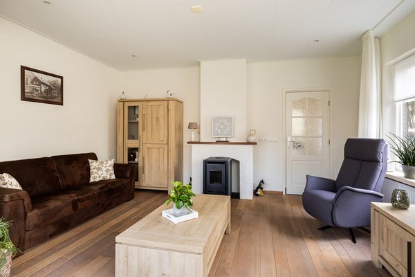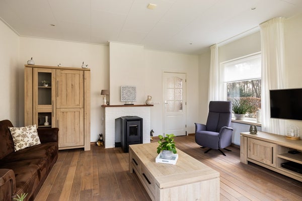 Een van de grote pluspunten van deze woning zijn de royale overkappingen en de aangebouwde stenen garage. Deze bieden volop ruimte voor het stallen van auto’s, werkbussen of andere voertuigen en zorgen daarnaast voor meer dan voldoende bergruimte. In de garage bevindt zich bovendien een vlizotrap naar een ruime vliering, ideaal voor het opbergen van spullen. Rondom de woning ligt een royale tuin die uitnodigt tot het creëren van meerdere gezellige zitplekken. Of je nu wilt ontspannen in de zon of juist de schaduw opzoekt, hier geniet je optimaal van het buitenleven. Dankzij het vele groen en de aanwezige bomen zit je bovendien heerlijk beschut.