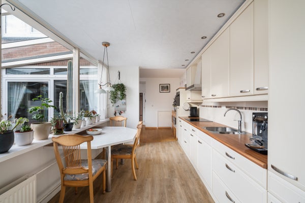 Dit karakteristieke 2-onder-1 kapwoning aan de rand van Hazerswoude-Rijndijk biedt de perfecte combinatie van groen wonen en nabijheid van dagelijkse voorzieningen. Gelegen op een perceel van 477 m² met vrij uitzicht aan de achterzijde, beschikt de woning over een serre, waar je het hele jaar door buiten kunt zitten. De woning heeft een oprit met plek voor 3 auto's, een moderne badkamer (2019) en 15 zonnepanelen. De lichte woonkamer met houten vloer en houtkachel gaat over in de uitgebouwde keuken (2015) en een praktische bijkeuken. Op de eerste verdieping zijn 3 slaapkamers, en een zolder tweede verdieping kan ingericht worden als extra kamers. De ruime achtertuin biedt privacy en diverse terrassen. Met uitstekende verbindingen naar de grote steden is deze woning ideaal voor gezinnen.