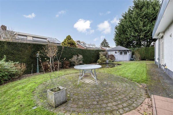 Aan opbergruimte overigens geen gebrek: er is een ruime garage waar je niet alleen je auto kwijt kunt, maar ook een stapel dozen, je fietsen en nog wat hobbyspullen. En voor de tuinliefhebber is er het handige tuinhuis. Dat is praktische luxe ten top! Het perceel met een flinke oppervlakte van 620 m² biedt je alle vrijheid, zonder dat je elke zaterdag de handen uit de mouwen hoeft te steken. Hier voel je je gewoon thuis.