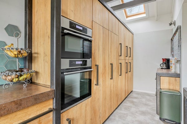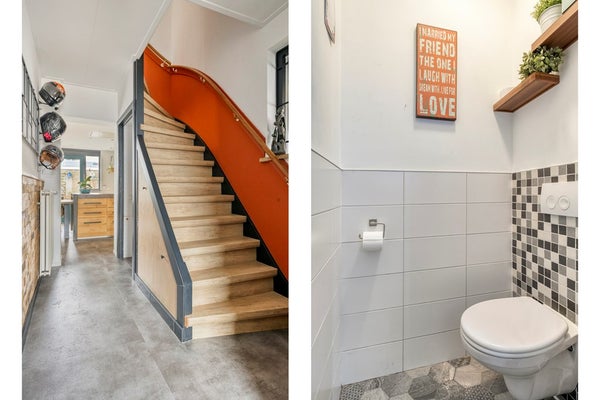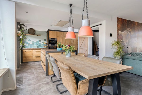 Binnen valt direct de sfeervolle woonkamer op: licht, uitnodigend en prettig ingedeeld. De open keuken sluit hier naadloos op aan, waardoor een fijne leefruimte ontstaat waar koken, eten en ontspannen moeiteloos samenkomen. Of u nu gezellig met het gezin aan tafel zit of vrienden ontvangt: dit is een huis dat klopt.