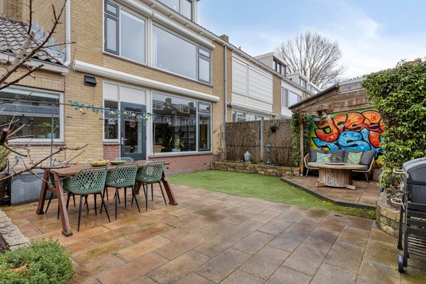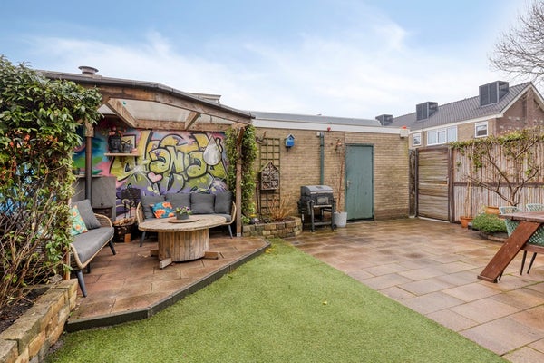 Ook buiten is het genieten. De achtertuin is gunstig gelegen op het zuidwesten en biedt veel zon. Op het terras kunt u al vroeg in het jaar heerlijk buiten zitten, van een kop koffie in de ochtend tot lange avonden in de zomer. Achter in de tuin staat een vrijstaande garage, bereikbaar via de achtertuin: perfect voor extra bergruimte, fietsen, motor of hobby, en gewoon heel praktisch in het dagelijks gebruik.