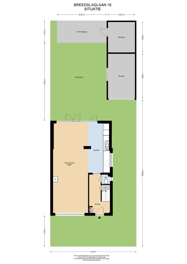 - Aanwezig (90 m², gelegen op het noordwesten)