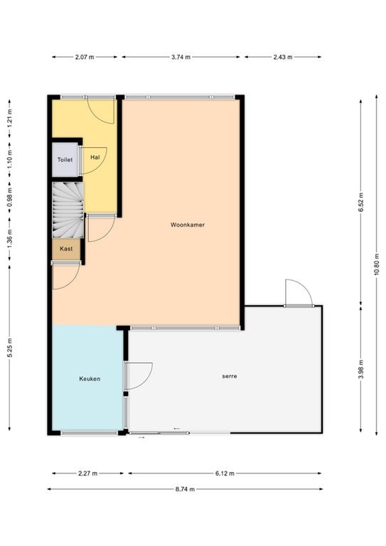 Bij binnenkomst stapt u de ruime hal in, waar u direct toegang heeft tot het toilet, de trap naar de eerste verdieping en de doorzonwoonkamer. Deze woonkamer loopt vloeiend over in de aangebouwde open keuken, voorzien van diverse inbouwapparatuur. Vanuit de keuken bereikt u de riante, aangebouwde veranda. Dankzij de grote glazendeuren geniet u hier van veel natuurlijk licht en een mooi zicht op de ruime achtertuin.