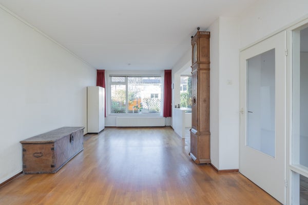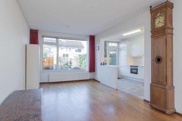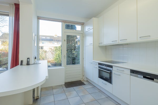 De begane grond wordt gekenmerkt door een lichte en sfeervolle woonkamer met een plezierige indeling en een aangename verbinding met de halfopen keuken. Door de hoekligging en de ramen aan meerdere zijden is er veel natuurlijke lichtinval. De keuken is praktisch ingericht, voorzien van diverse inbouwapparatuur, bergkast en achterdeur, waardoor de tuin direct toegankelijk is en binnen en buiten moeiteloos in elkaar overlopen.