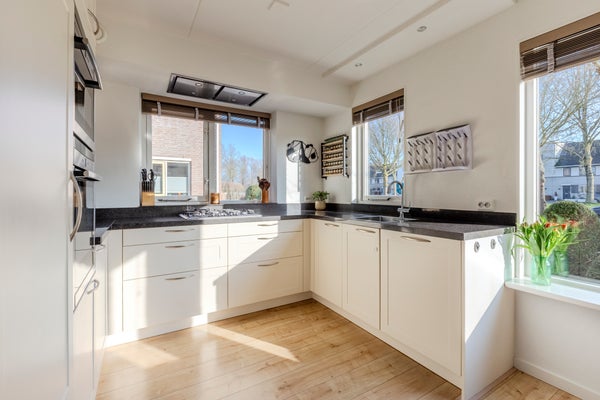 The popular Butterhuizen neighborhood is known for its spacious layout with abundant greenery and water, its diverse housing options, and its peaceful, child-friendly living environment. All daily amenities are within a 5-minute bike ride: the charming Middenwaard shopping center (the largest indoor shopping center in North Holland), several supermarkets, schools, playgrounds (one just around the corner), and public transport (a bus stop to Alkmaar city center). Heerhugowaard train station is just a 7-minute bike ride away, and thanks to its convenient location near the N242, you can easily reach the A9 motorway to Alkmaar, Haarlem, and Amsterdam.
