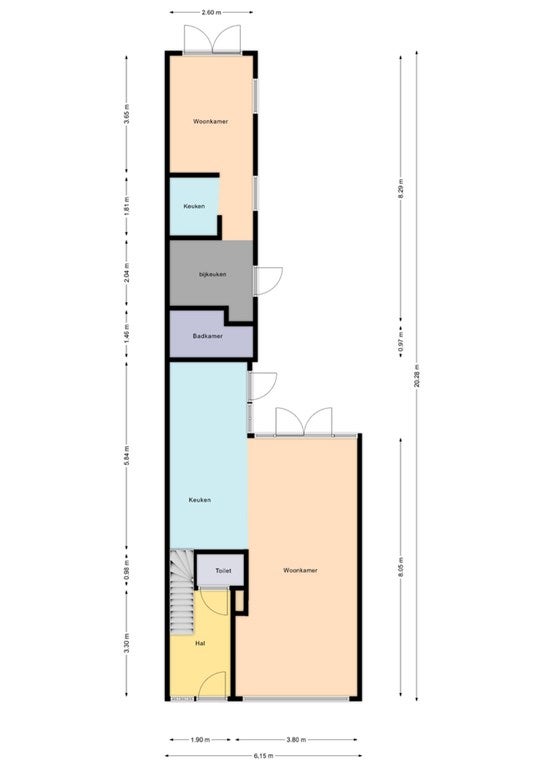 - De tussenwoning heeft een woonoppervlakte van 96 m² en beschikt over 5 kamers, waarvan 3 slaapkamers;