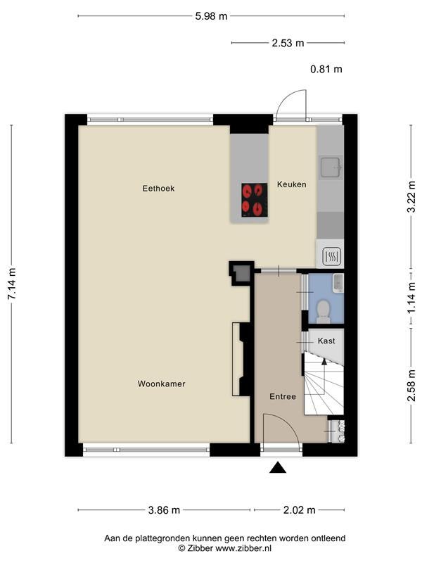 De meting van de woonruimte, volgens de NEN2580-meetinstructie, heeft een deze woningoppervlakte van 85 m². Door interpretatieverschillen kan de ruimte op de tweede verdieping ( circa 16 m²) gezien worden als kamer. Deze ruimte heeft door het verlaagde plafond een hoogte van 1,93 meter en mag daarom, omdat de minimale hoogte 2 meter moet zijn, niet worden meegerekend als woonoppervlakte.
