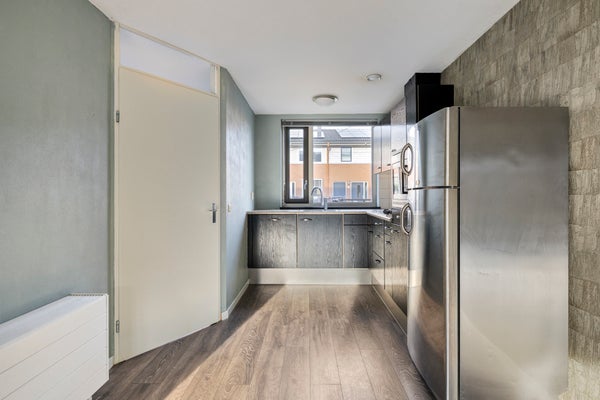 Rustig gelegen in de populaire Zuidwijk vind je deze tussenwoning aan het water, in een autovrije straat. Ideaal voor gezinnen, met een speelplaats vooraan en voldoende parkeermogelijkheden. Binnen kom je in een lichte woonkamer met mooi uitzicht op de achtertuin en een open keuken, volledig uitgerust met moderne apparaten. Boven zijn twee slaapkamers, waarvan één is omgevormd tot een ruime master bedroom met een 8-deurs kastenwand. De badkamer heeft een ligbad, douche en tweede toilet. De vliering biedt extra opbergruimte. De achtertuin ligt op het zuidoosten en is rustig, met een groene uitstraling door plantenbakken. Voor is er een goed onderhouden voortuin met ruimte voor vuilcontainers. Een comfortabele woning die kindvriendelijkheid en rust biedt.