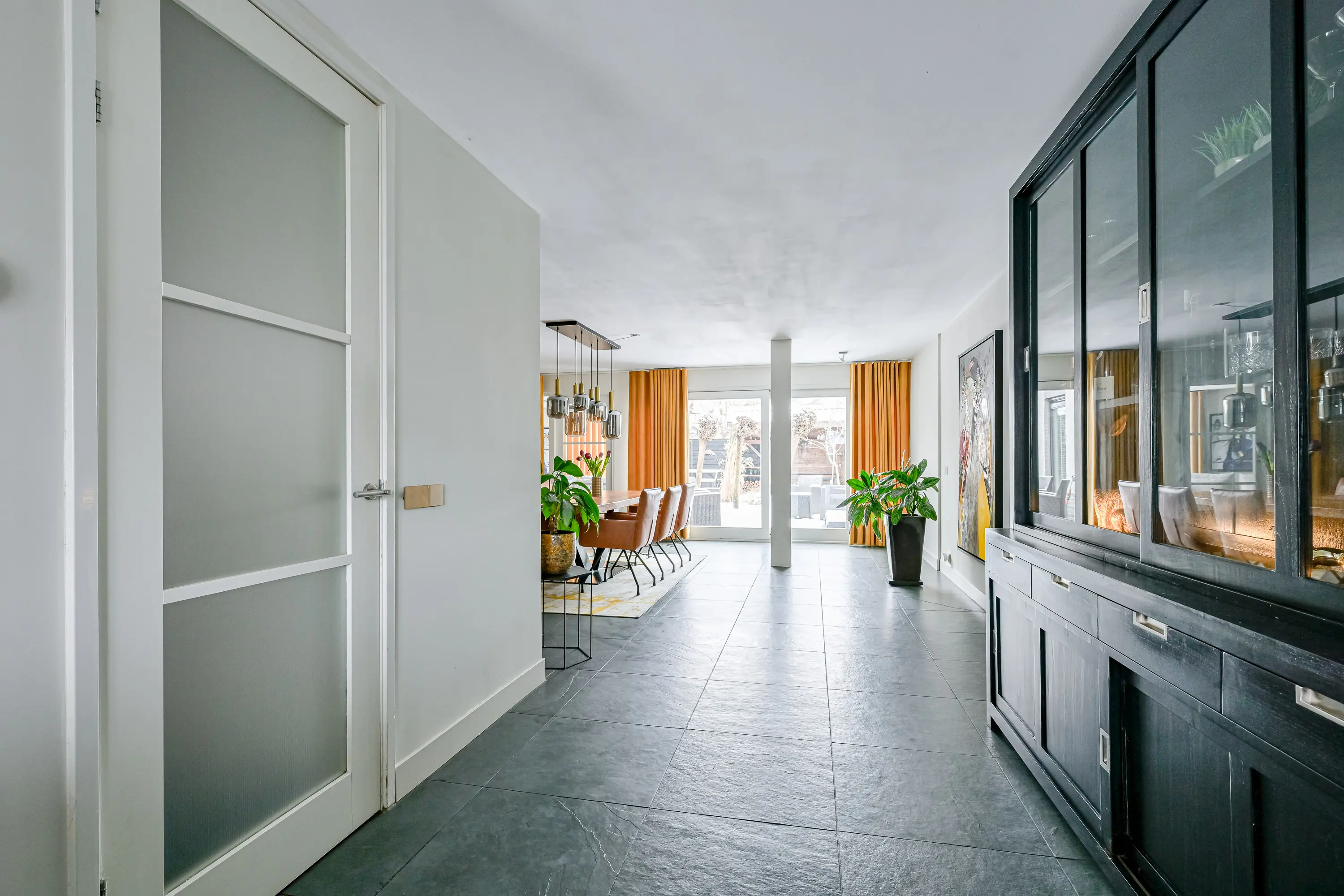 Deze ruime geschakelde gezinswoning met garage bevindt zich aan een rustige straat in de gewilde woonwijk Butterhuizen. Met 146 vierkante meter woonoppervlakte op een perceel van 285 vierkante meter biedt deze woning veel ruimte. De voortuin heeft parkeergelegenheid voor meerdere auto's en de mogelijkheid voor het opladen van een elektrische auto. De mooi aangelegde achtertuin is voorzien van zitjes en een veranda. De woning heeft een open keuken die verbinding geeft met de woonkamer en de aanbouw, die als loungeplek is ingericht. Op de eerste verdieping zijn drie ruime slaapkamers en een grote badkamer met ligbad en inloopdouche. De garage, bereikbaar vanuit de hal, biedt extra opbergruimte. Tevens is er een vlizozolder voor meer opslag. De omgeving biedt veel groen en is goed bereikbaar via fiets en openbaar vervoer.
