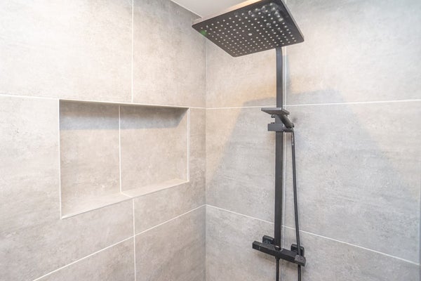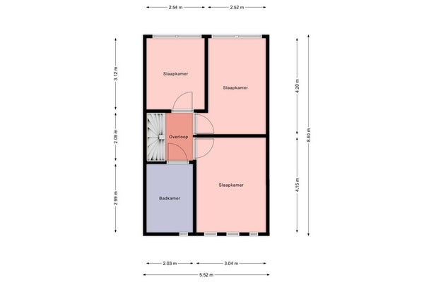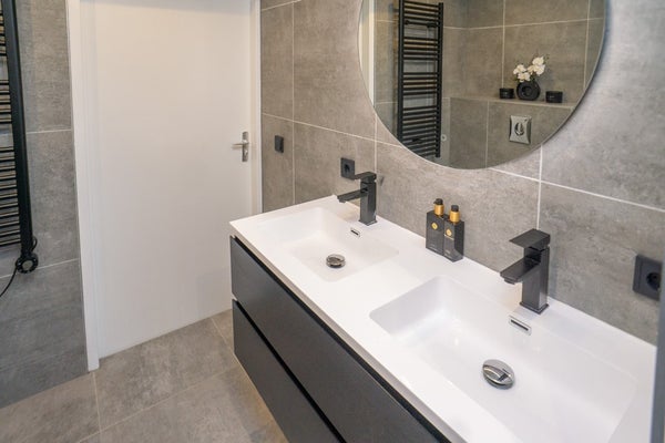 Op deze verdieping bevinden zich drie slaapkamers: twee aan de achterzijde en één aan de voorzijde. De moderne badkamer is uitgerust met een douche, toilet en wastafel. Dankzij het raam is er, naast de mechanische ventilatie, ook natuurlijke ventilatie aanwezig.