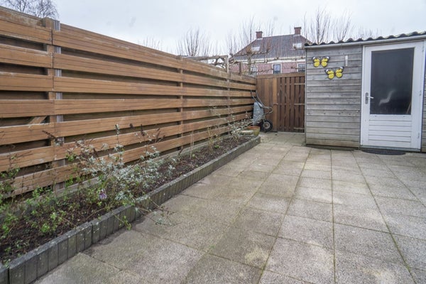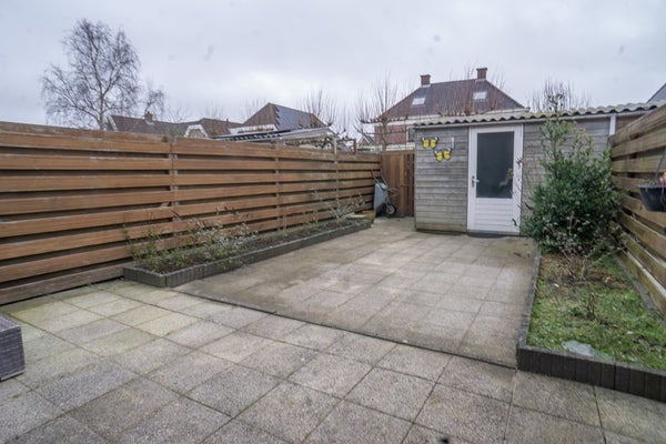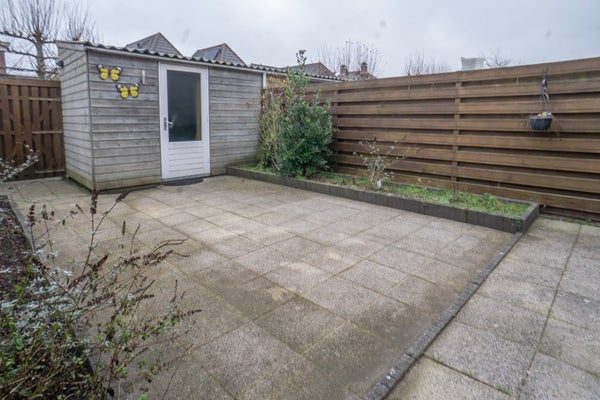 De besloten achtertuin is gelegen op het noord-oosten, is keurig bestraat en voorzien van een praktische berging. Een fijne plek om in alle rust te genieten.