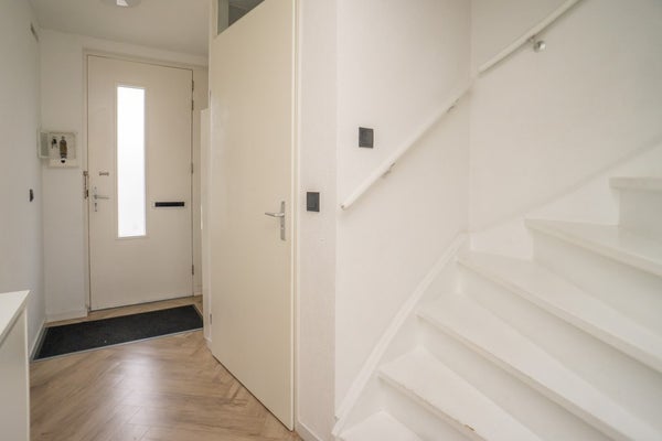 Entree/hal met meterkast, modern toilet en trapopgang naar de eerste verdieping. Vanuit de hal bereikt u de verrassend ruime woonkamer met open keuken. Dankzij de royale uitbouw aan de achterzijde is hier een heerlijke, lichte living ontstaan. Praktisch is de bergkast onder de trap, ideaal voor extra opslag.