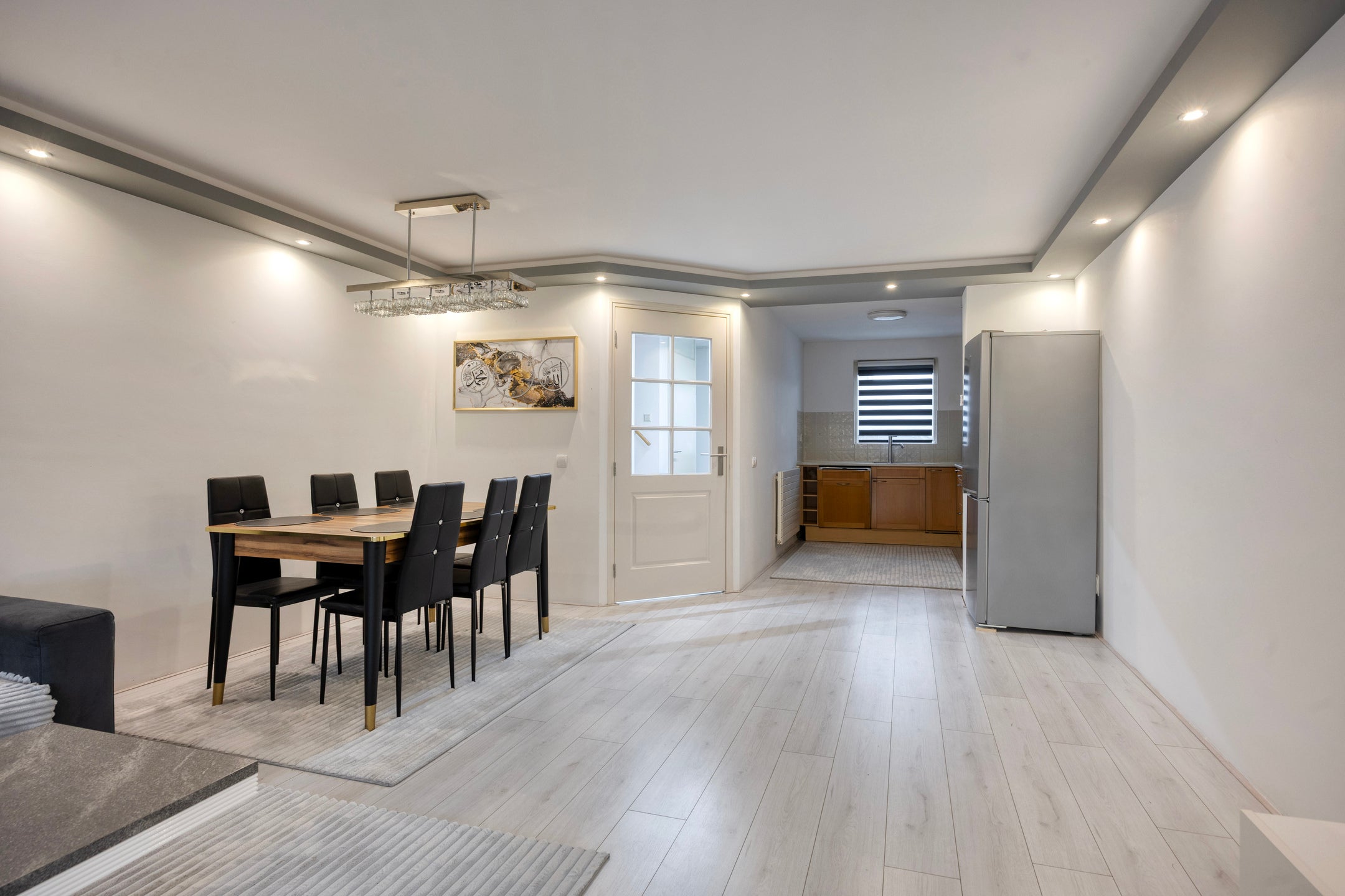 De onderhoudsvriendelijke achtertuin met overkapping zorgt voor privacy. Gelegen in een rustige woonwijk nabij voorzieningen en uitvalswegen, biedt deze woning comfort en ruimte zonder in te boeten op stijl.