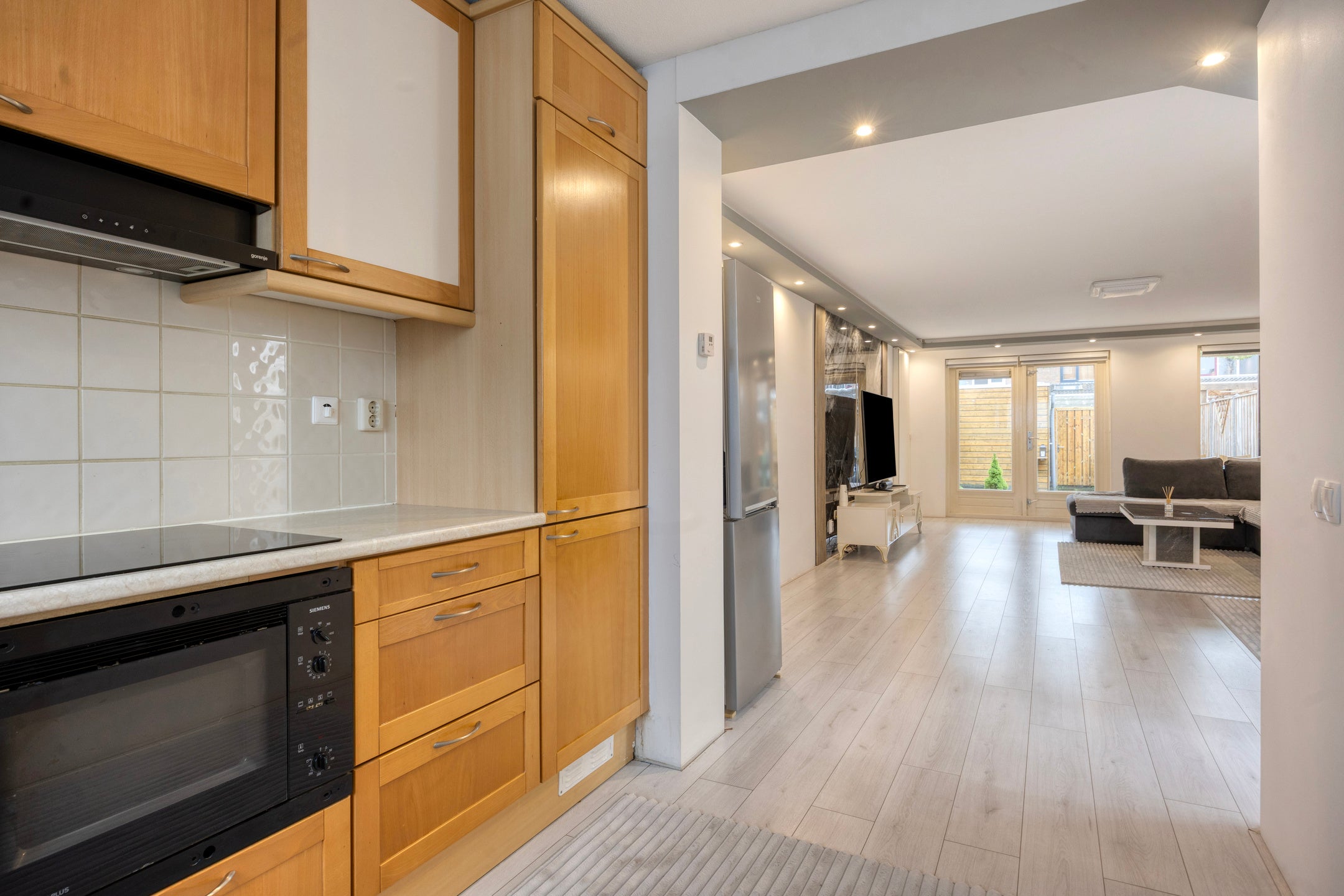 Aagje Dekentuin 25 is een verrassend ruime tussenwoning van 108 m². Bij binnenkomst valt direct op hoe de leefruimtes prettig in elkaar overlopen. De diepe woonkamer heeft openslaande deuren naar de tuin en biedt ruimte voor een grote zithoek en eettafel. De keuken, slim aan de voorkant gesitueerd, is volledig uitgerust met moderne apparatuur. Boven zijn er drie slaapkamers, waaronder een hoofdslaapkamer met airconditioning en een moderne badkamer met inloopdouche. De tweede verdieping biedt een grote, lichte ruimte die als extra slaapkamer of werkruimte kan dienen.
