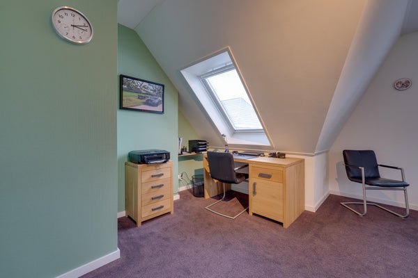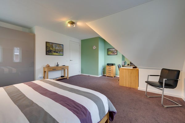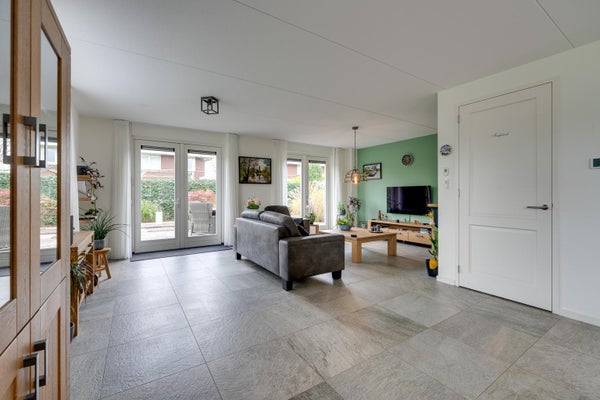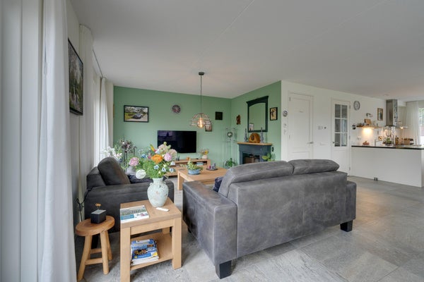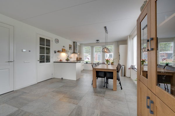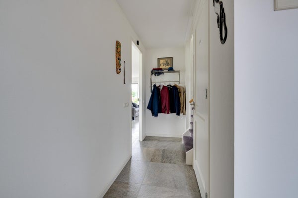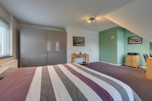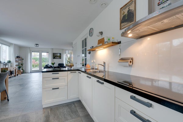 De indeling omvat een entree met toilet, een royale L-vormige woonkamer van 54 m² met hoekkeuken en dubbele tuindeuren. Op de eerste etage zijn twee ruime slaapkamers van 16 m² en 30 m², en een complete badkamer met vloerverwarming. De zolderify met nokhoogte van 2,13 meter biedt extra bergruimte. deze woning is perfect te betrekken of aan te passen aan levensloopbestendig wonen.