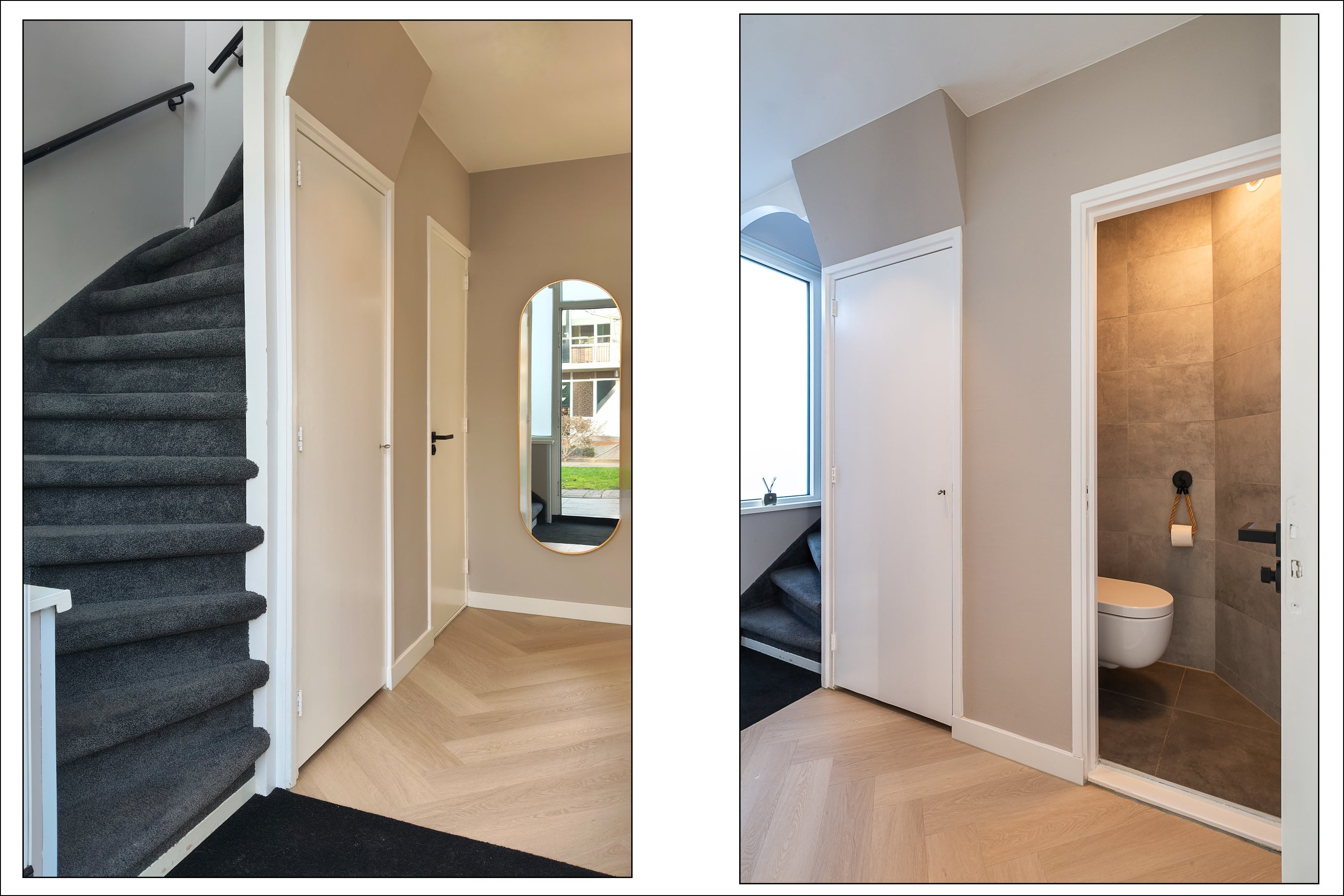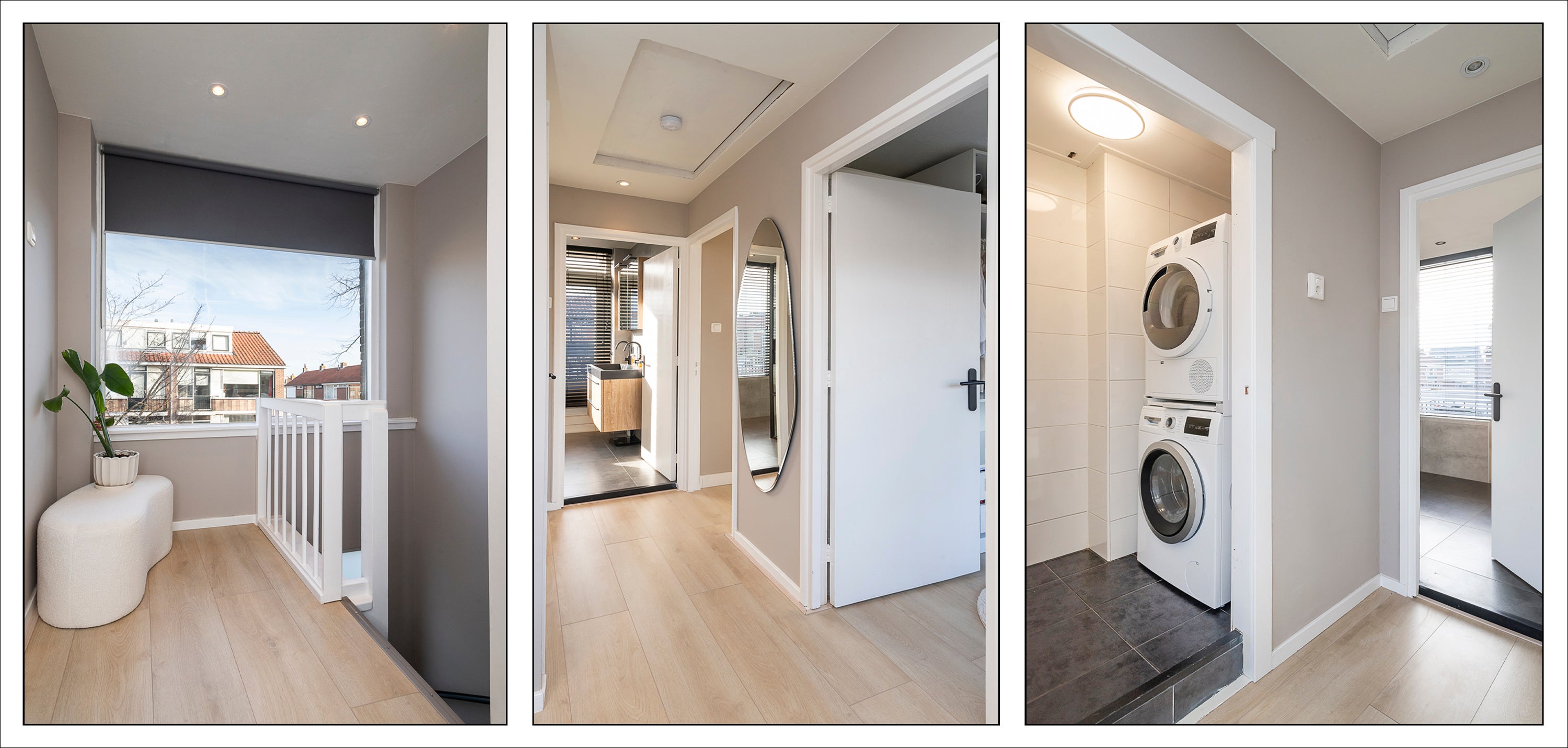 Op de eerste verdieping zijn er twee slaapkamers met ingebouwde kasten, een aparte wasruimte en een luxe badkamer met regendouche. De woning is goed onderhouden, heeft een energielabel B, en is voorzien van zonnepanelen. De gunstige ligging dichtbij voorzieningen en natuur maakt dit een ideale plek om te wonen.