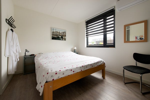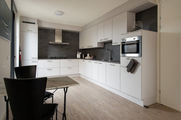 Via de onderhoudsvrije voortuin bereikt u de hal/entree, welke is voorzien van een toiletruimte, meterkast (8 groepen en 2 aardlekschakelaars) en een technische ruimte met opstelplaats voor de wasmachine, mechanische ventilatie-unit, omvormer en de HR-combiketel (2019). Vanuit de hal betreedt u de ruime en lichte woonkamer met een in hoek opgestelde moderne inbouwkeuken (2019). De keuken is compleet uitgerust met een 5-pits gaskookplaat, koel-vriescombinatie, combi-oven, afzuigkap en vaatwasser. De woning beschikt over twee slaapkamers, waaronder een royale hoofdslaapkamer met een en-suite badkamer voorzien van douche, wastafel en tweede toilet. De tweede slaapkamer is multifunctioneel en leent zich uitstekend als hobby- of werkkamer. De gehele woning is netjes afgewerkt met een PVC-vloer, voorzien van rolluiken en beschikt over airconditioning in de hoofdslaapkamer.