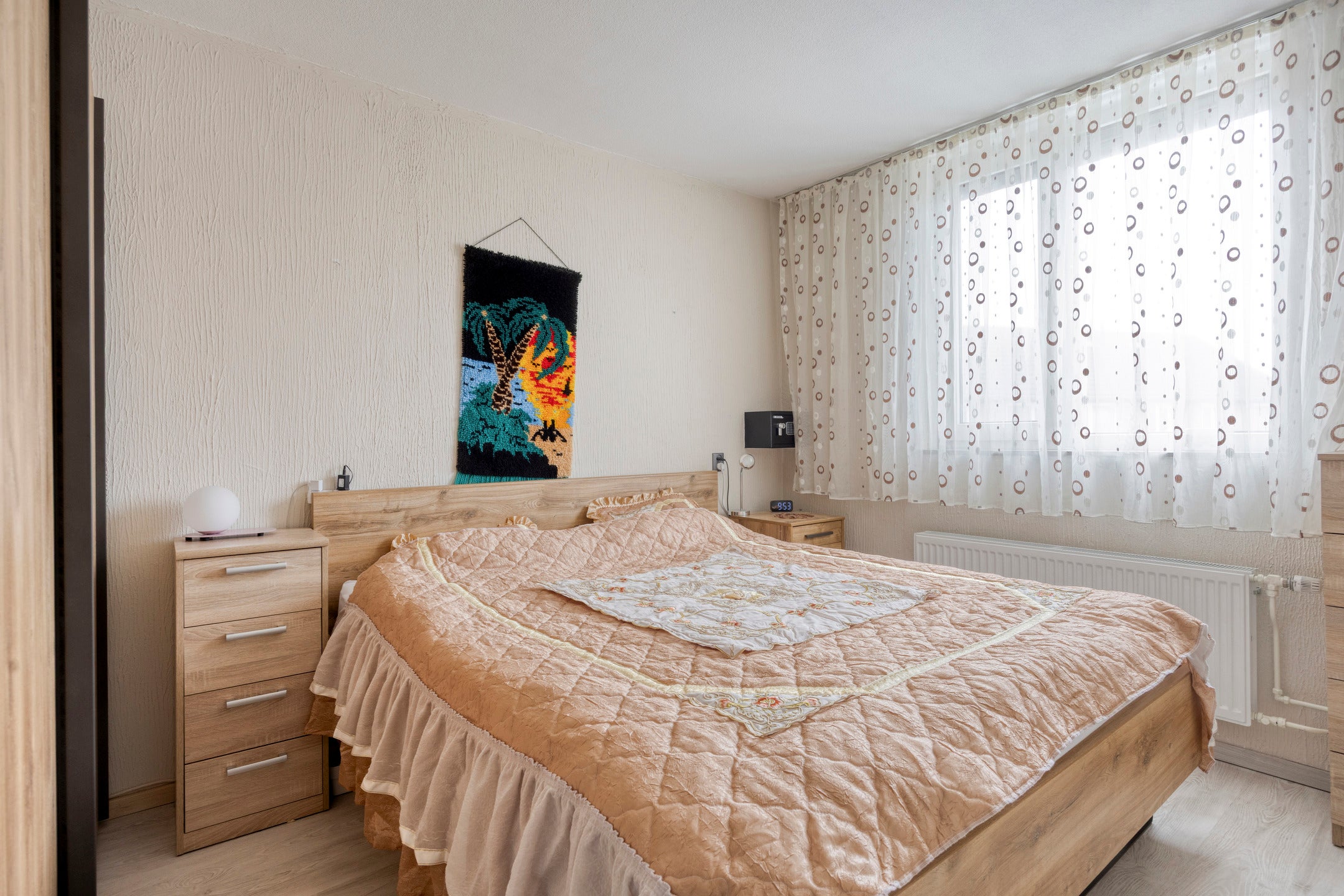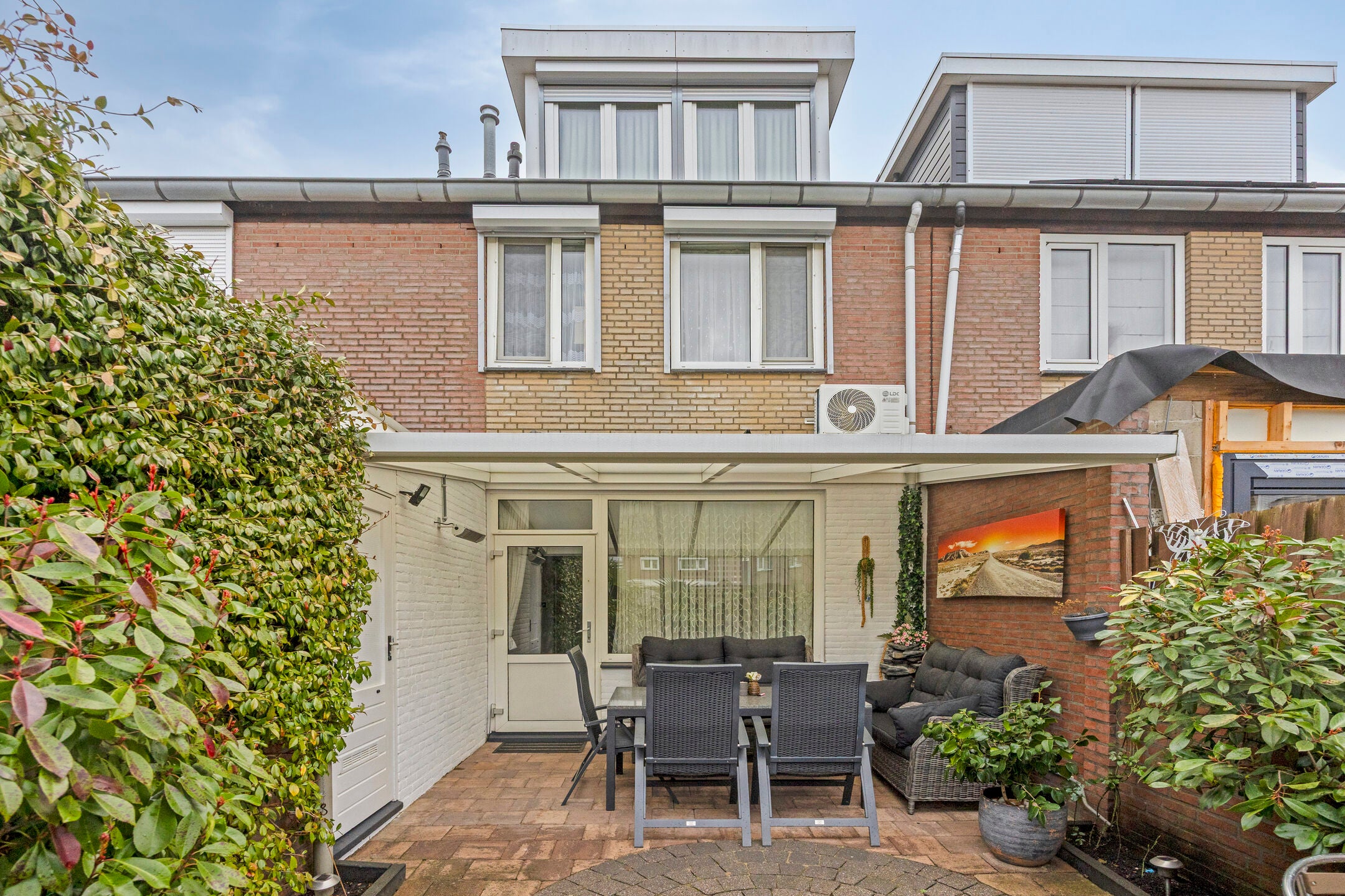 Deze goed verzorgde tussenwoning, gelegen aan een rustige woonerf, biedt 4 slaapkamers en een zonnige tuin op het westen, complete met terrasoverkapping. De woning, gebouwd in 1989, heeft een perceeloppervlakte van 111 m² en een woonoppervlakte van 96 m². De begane grond beschikt over een entree met laminaatvloer, een gezellige woonkamer met toegang tot de tuin, en een keuken aan de voorzijde met diverse inbouwapparatuur. Op de eerste verdieping bevinden zich drie slaapkamers en een betegelde badkamer met ligbad en dubbele wastafel. De zolder, bereikbaar via een vaste trap, kan dienen als 4e slaapkamer of hobbykamer. De woning is energiezuinig (label B) en heeft kunststof kozijnen met dubbel glas.