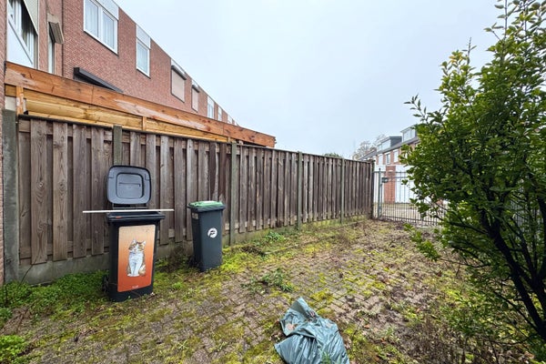 Via de tuindeur op de begane grond bereikt men de achtergelegen tuin. Deze tuin is gesitueerd op het zuidoosten en beschikt over een terras en achterom met poort.